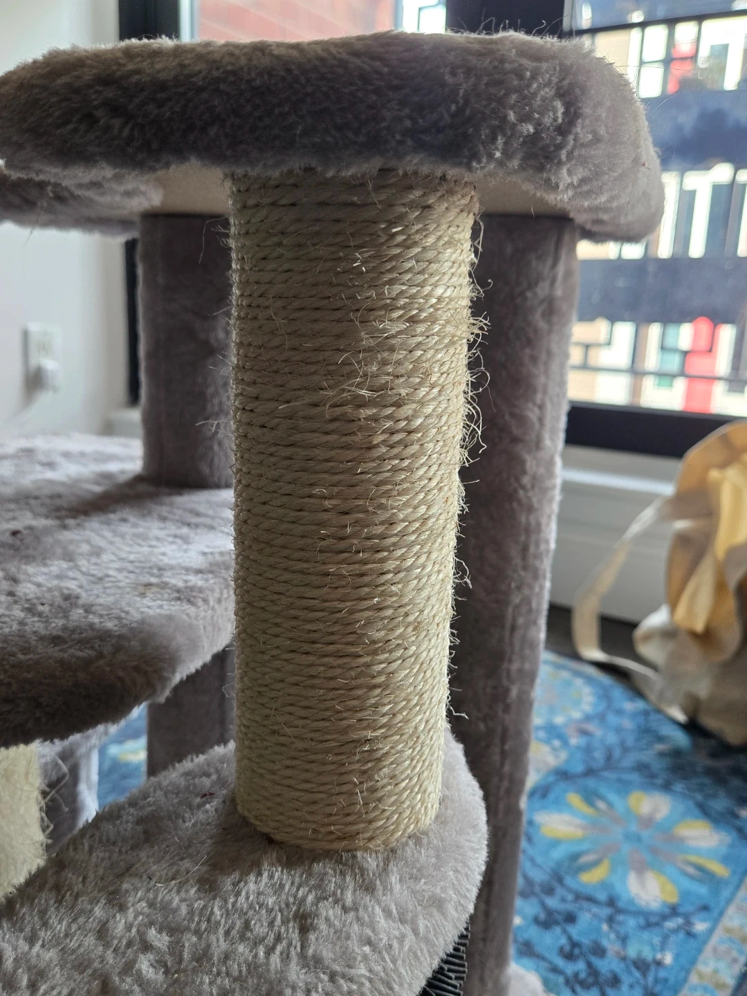 Bottom scratcher has been well-used but top is still very intact. Also includes a self-grooming station.