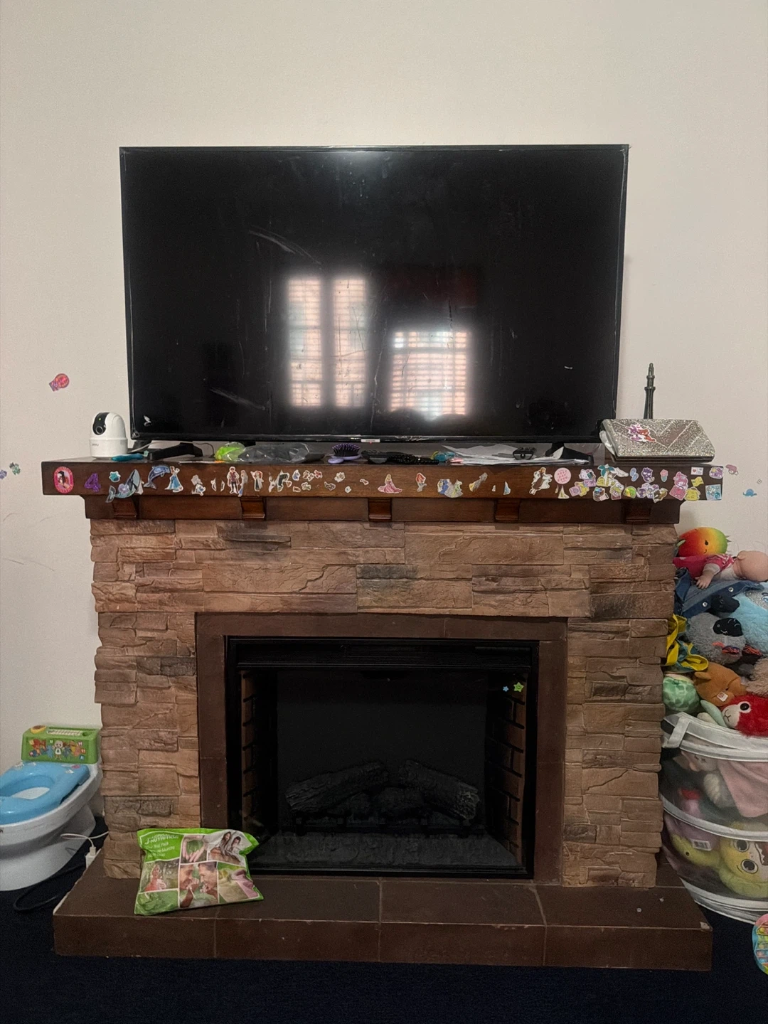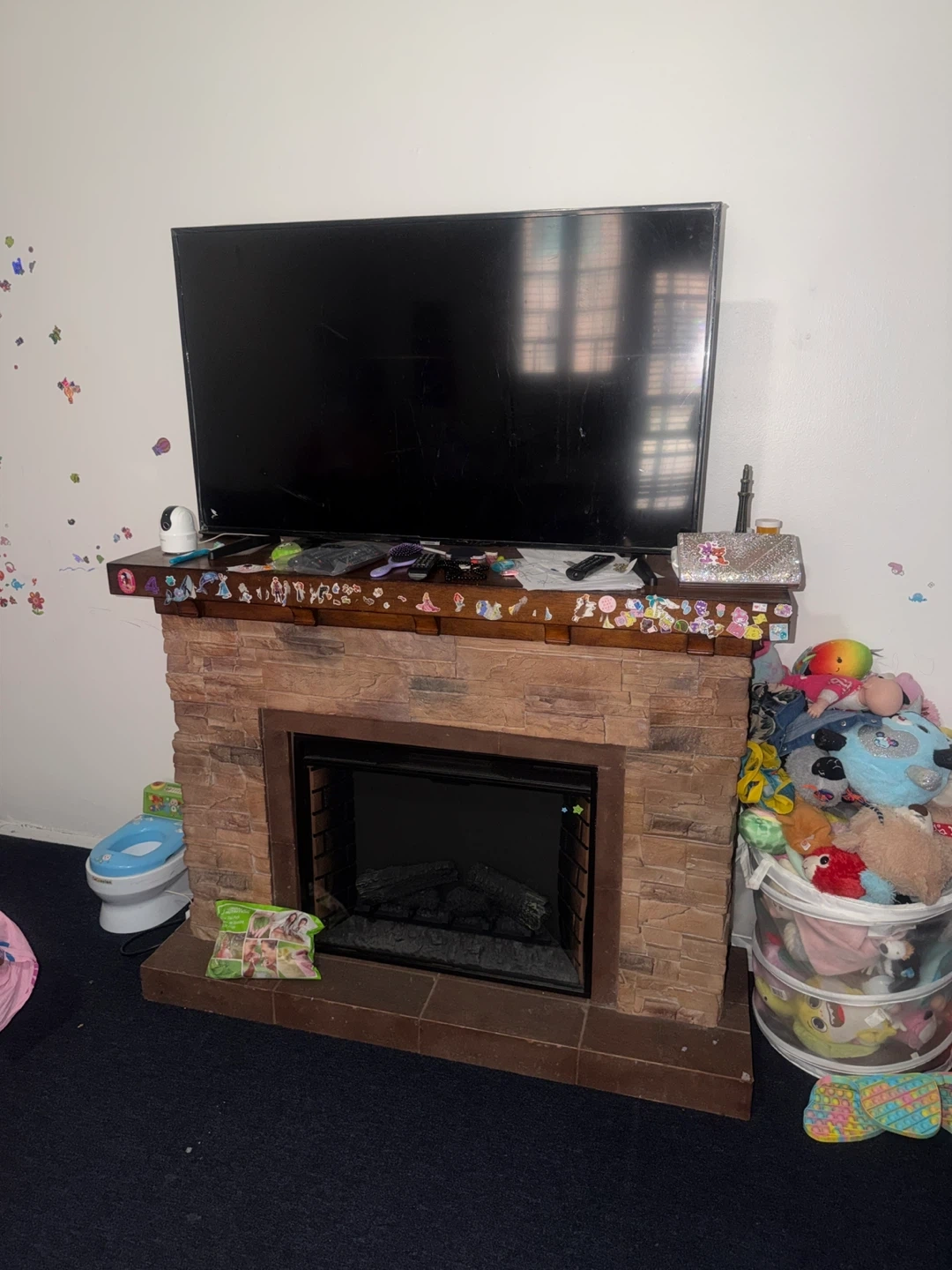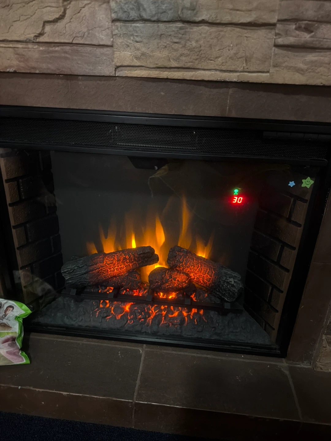 Electric fireplace in good condition! Perfect for adding a cozy touch to your living space. It has a realistic flame effect and adjustable temperature settings.
