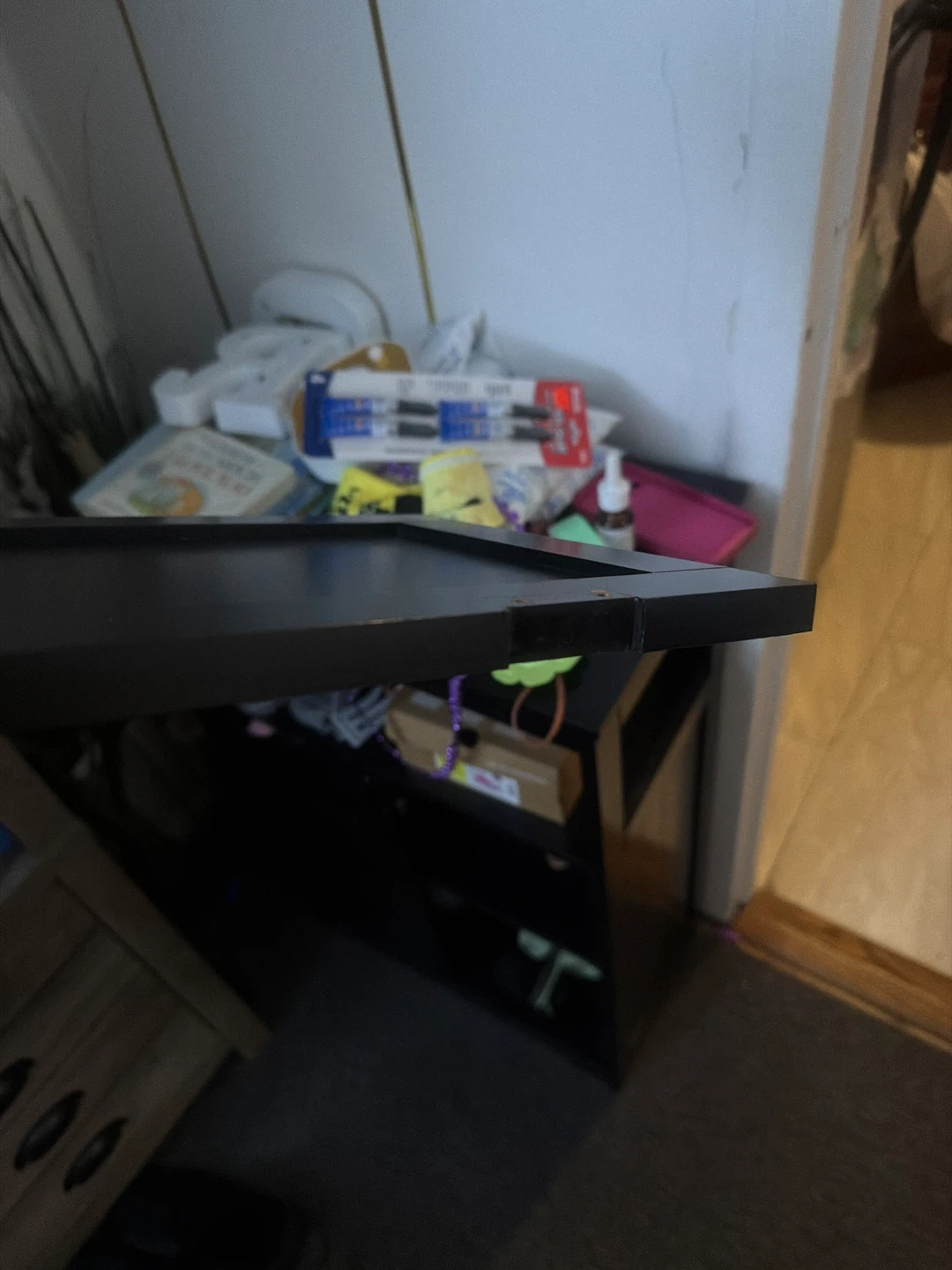 Selling a black storage cabinet. It has a drawer and a cabinet space. Good for storing various items!