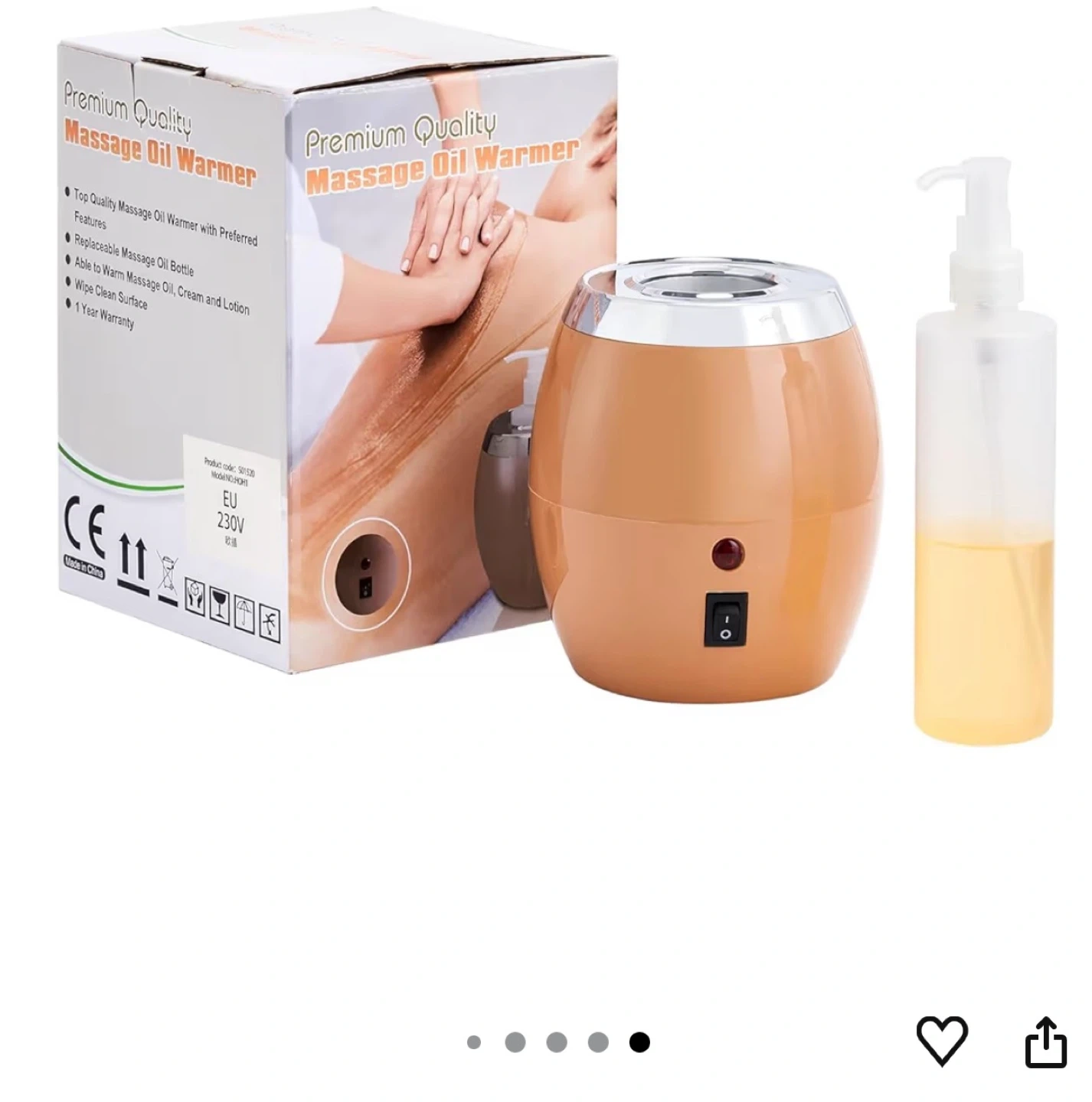 Premium quality massage oil warmer with preferred features. It comes with a replaceable massage oil bottle, and is able to warm massage oil, cream, and lotion. It also has a wipe clean surface