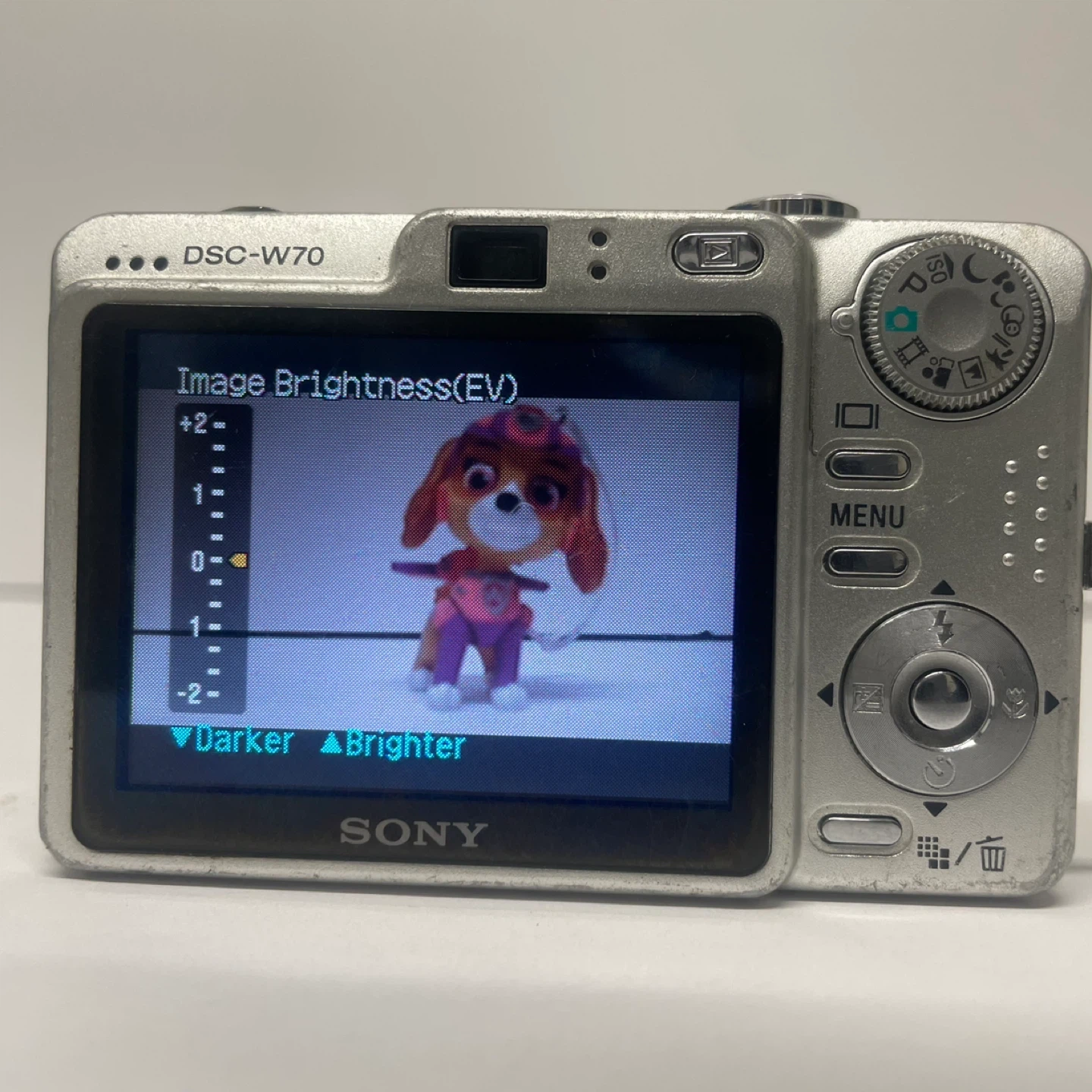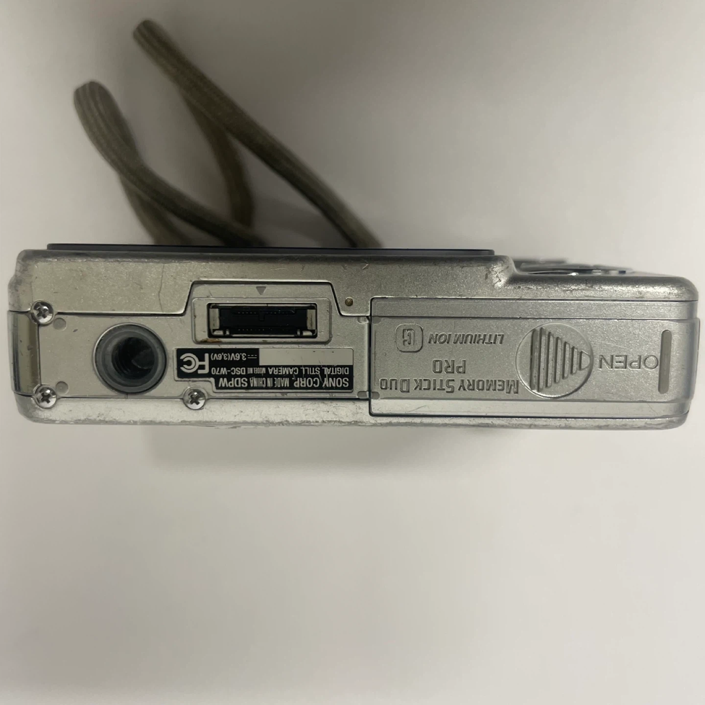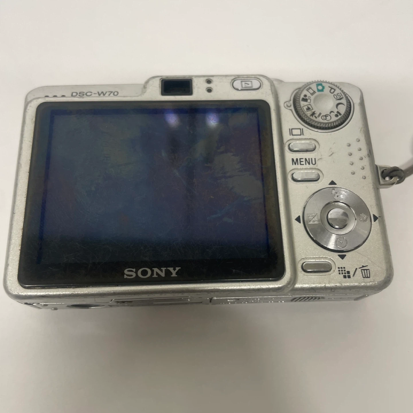 Selling a used Sony Cyber-shot DSC-W70 digital camera. It shows some signs of wear, but is still functional. It has a 7.2 Mega pixels camera and uses a Memory Stick Duo.