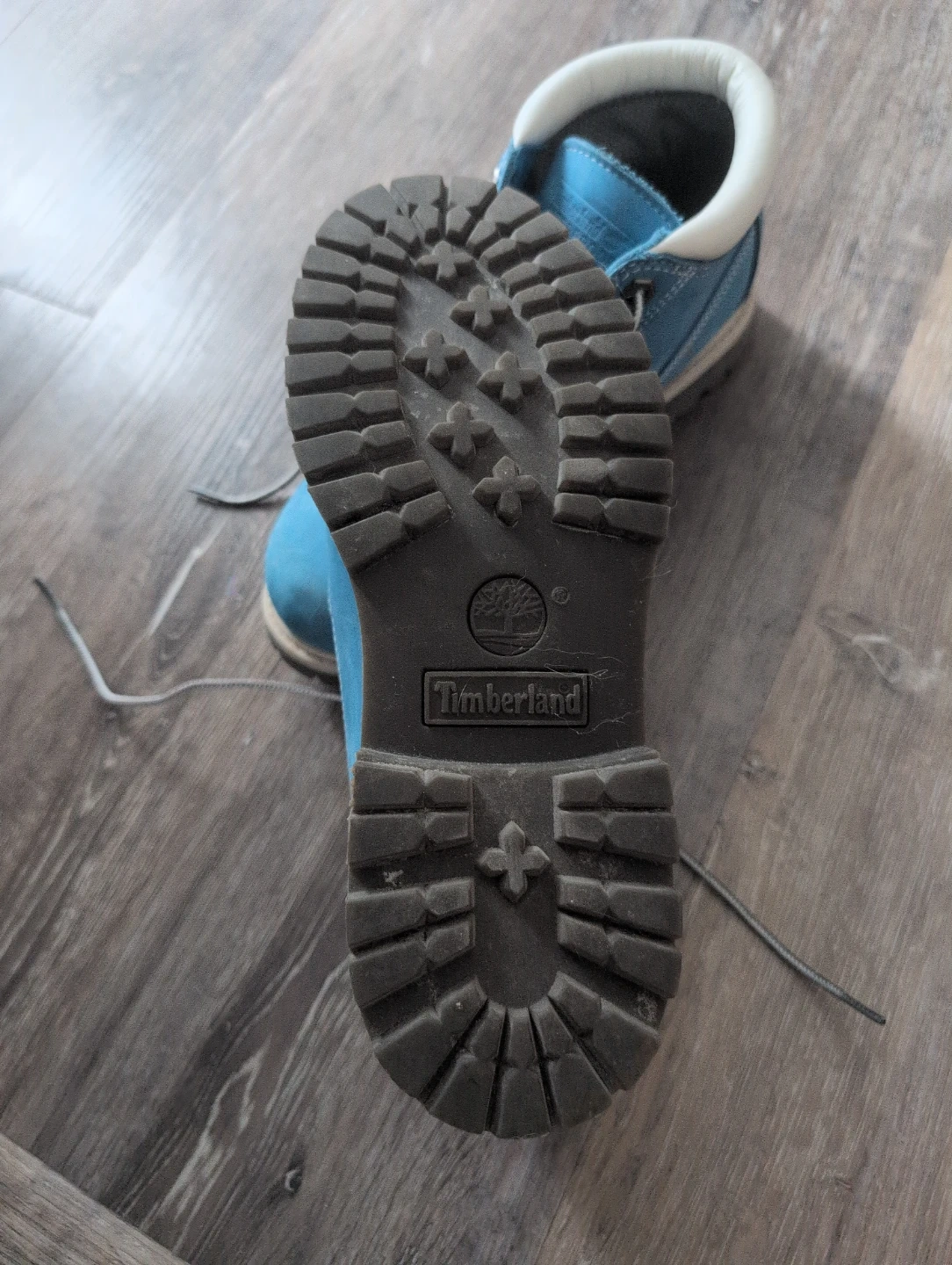 These Timberland chukka boots are a vibrant blue colour and made of leather! They're in good condition and ready for a new home. The classic Timberland style is always a great choice