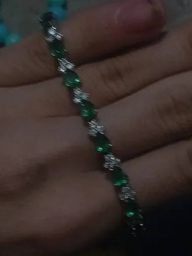 Beautiful emerald and diamond bracelet. It features a delicate design with alternating emerald and diamond stones. Perfect for adding a touch of elegance to any outfit!