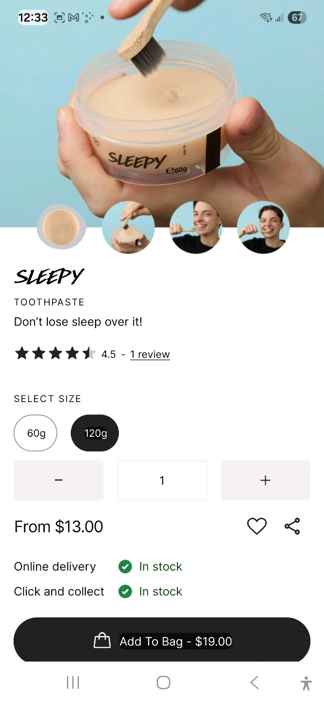 Selling a jar of Lush Sleepy toothpaste. It's the 120g size! The product promises you won't lose sleep over it. Add it to your bag online for $19!