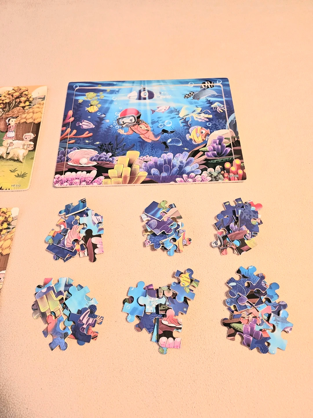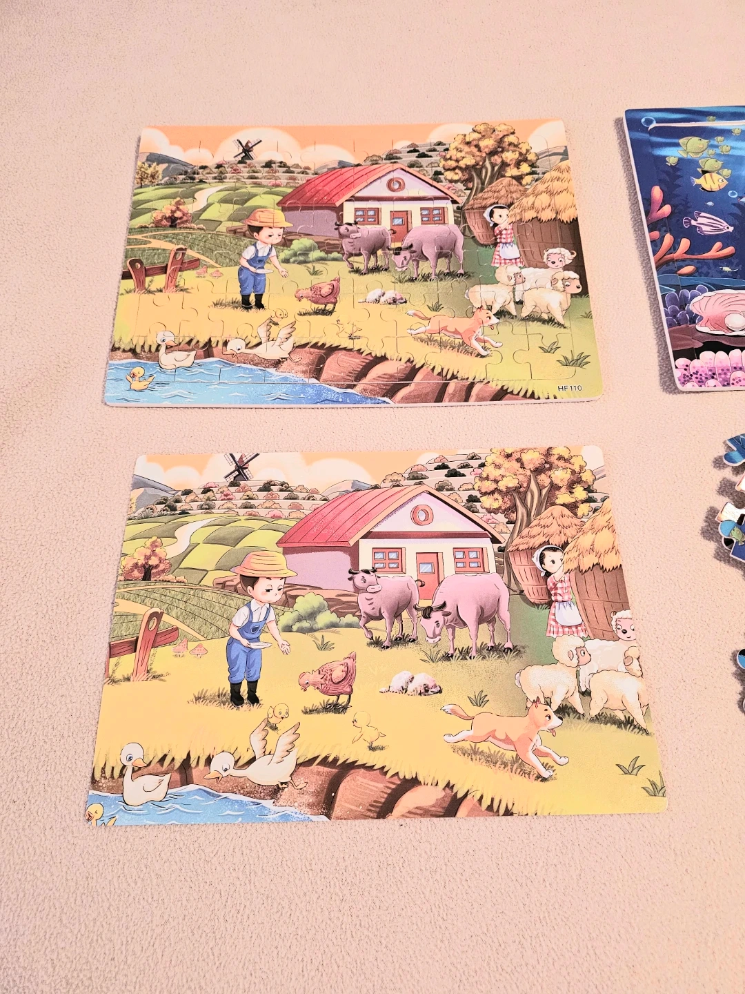Two NEW quality wooden puzzles! One features a farm scene, and the other is an underwater adventure. Great educational fun for developing problem-solving skills and hand-eye coordination for young ones. Each puzzle 30 x 22.5cm has 60 wooden pieces, wood base frame with a printed poster of same puzzle image. $4 Each
