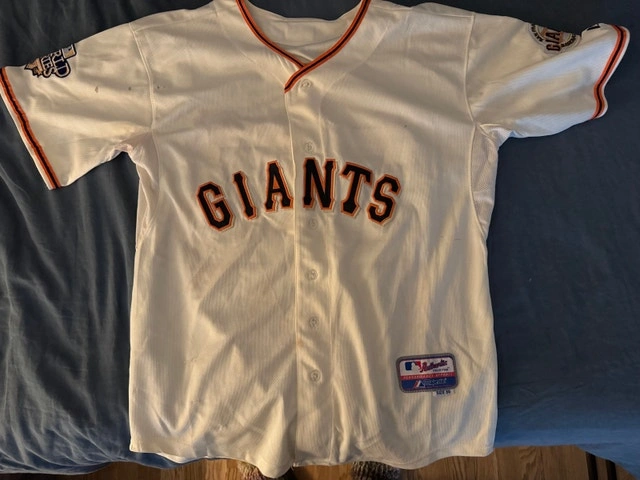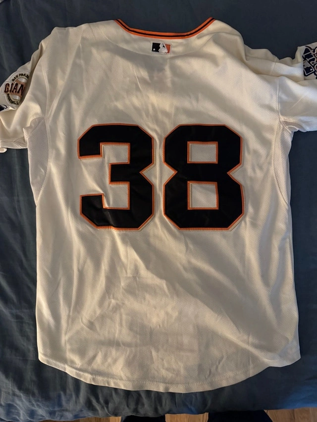 Selling a Majestic San Francisco Giants jersey, size 50, featuring the number 38 (Brian Wilson, aka The Beard). This jersey is in used condition, perfect for any Giants fan looking to show their support! Brand: Majestic Team: San Francisco Giants Size: 50 Player: #38 If the ad's up, it's still available!