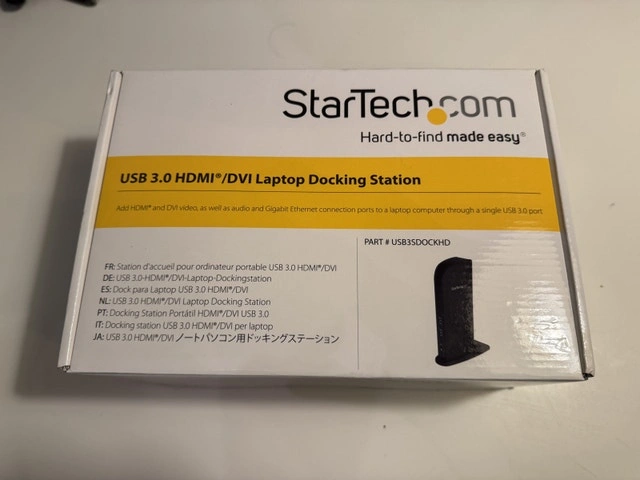 I'm selling a StarTech USB 3.0 HDMI/DVI Laptop Docking Station. It lets you add HDMI, DVI video, audio, and Gigabit Ethernet to a laptop via a single USB 3.0 port. This docking station is in like new condition and comes with all original accessories and packaging. Specifications: Ports: HDMI, DVI, Gigabit Ethernet, USB 3.0. Connectivity Technology: Wired. Data Link Protocol: Ethernet, Fast Ethernet, Gigabit Ethernet, USB 3.0. If this ad is still up, then yes, it is still available. No need to ask! :) Cash accepted. Cashless payment accepted.