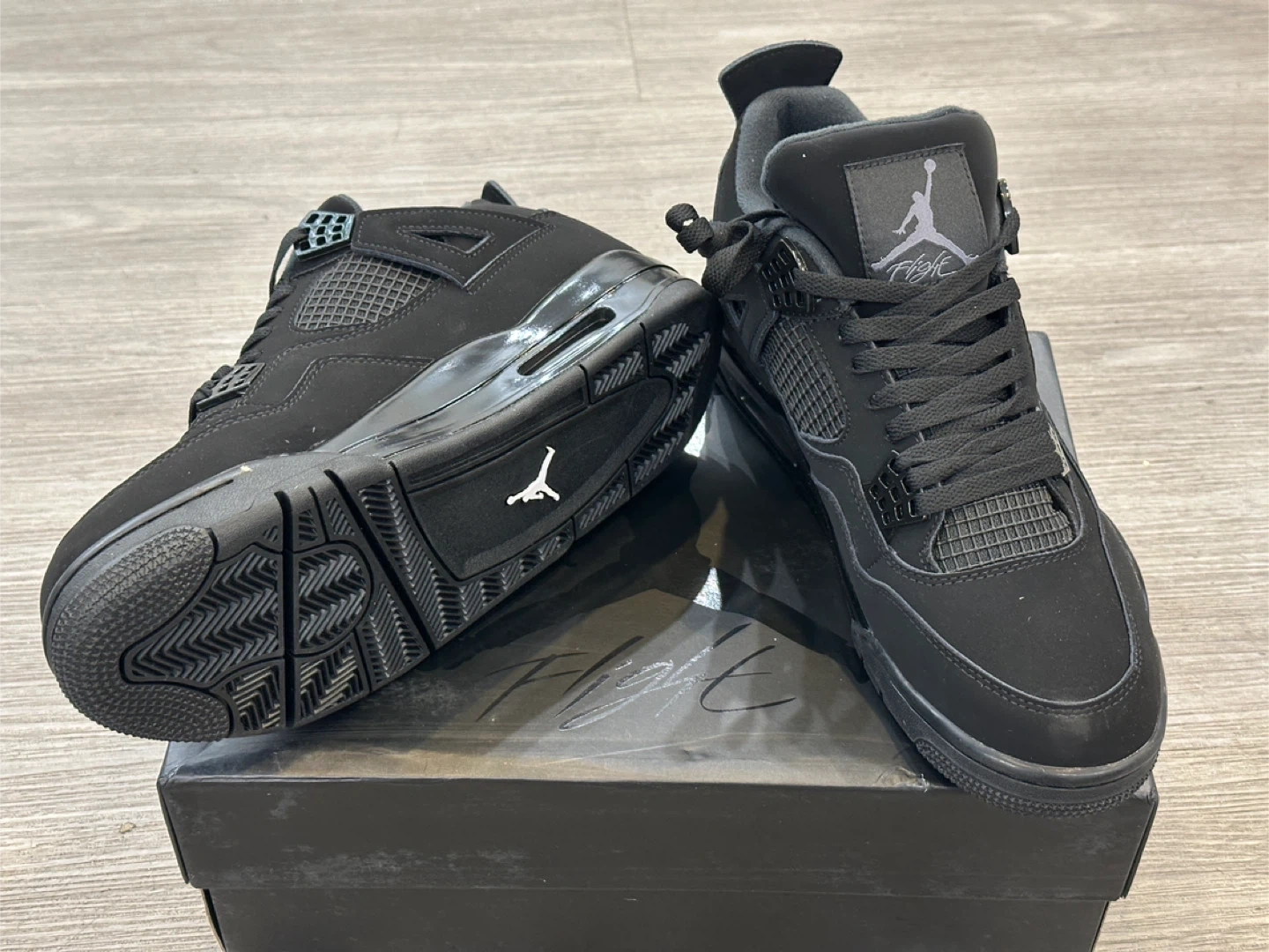 Selling a pair of Air Jordan 4 Retro Black Cat sneakers. They are in great condition and come with the original box. A classic and stylish addition to any sneaker collection!