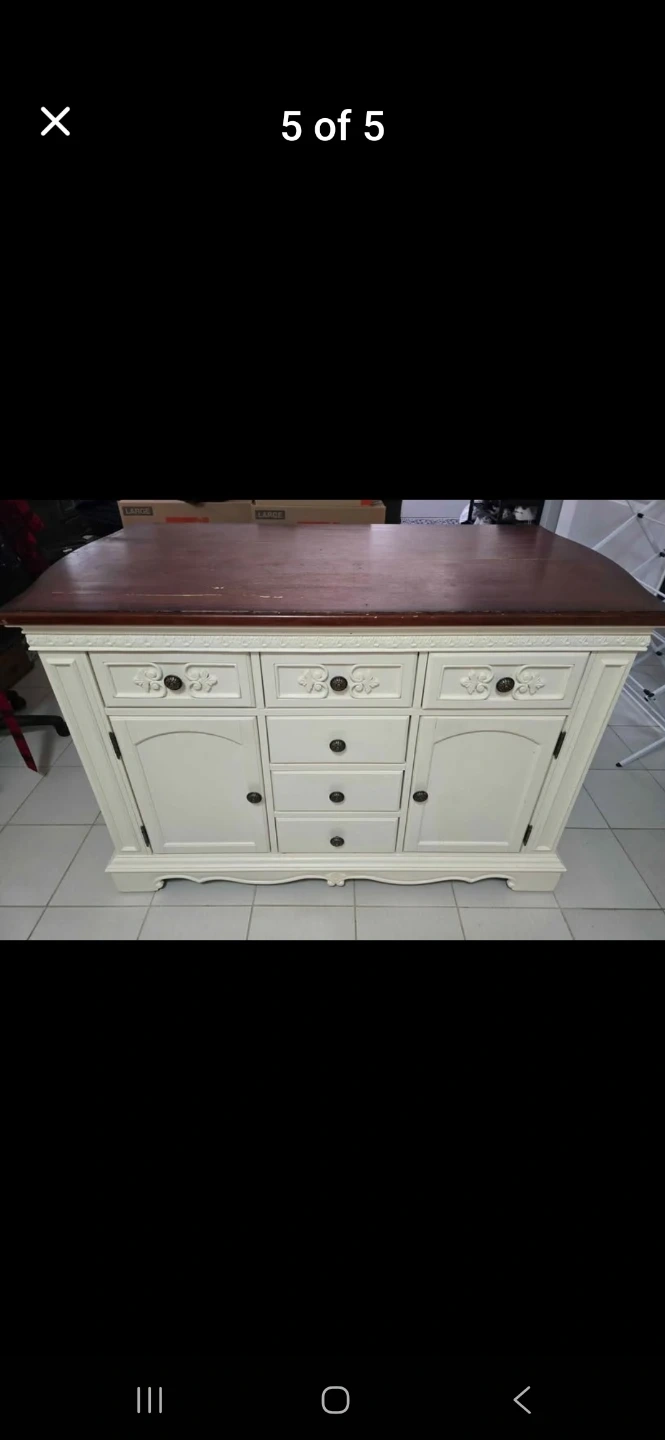 Selling a kitchen island with a dark brown top and white base, includes matching stools. It features drawers, cabinets, and a towel rack. Perfect for adding extra counter space and storage to your kitchen!