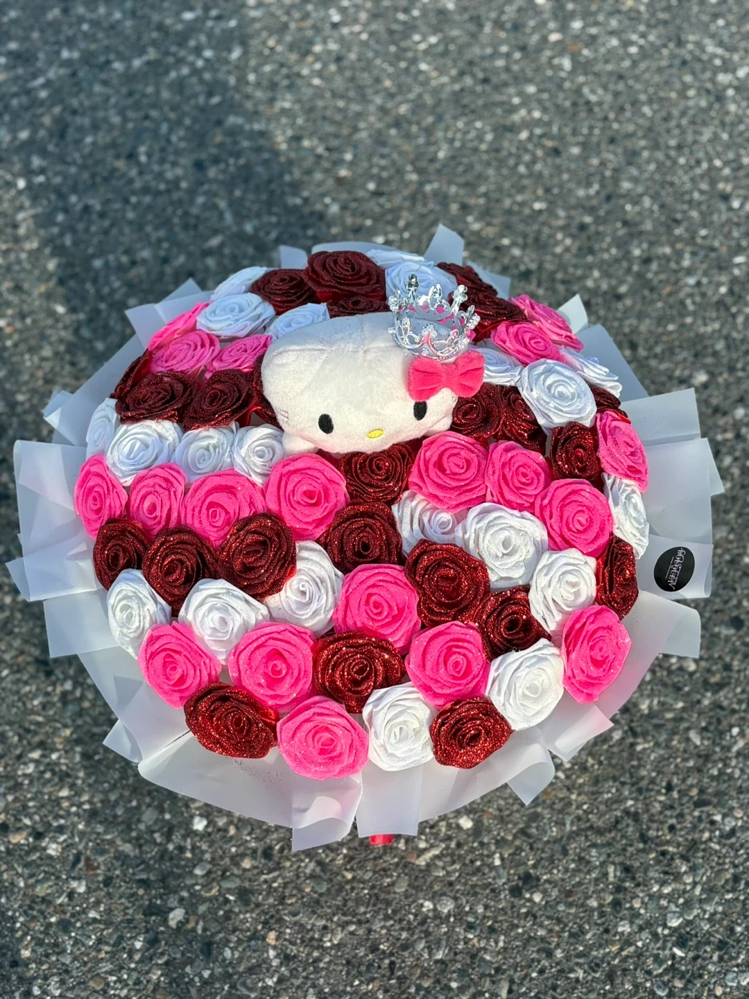 A beautiful Hello Kitty bouquet made of roses! Perfect for a gift or decoration