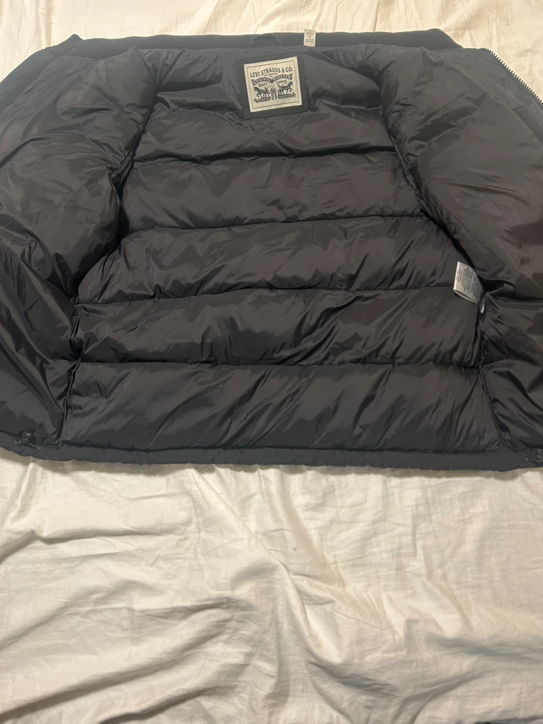 Selling a Levi's puffer jacket in black. It's a size large and in great condition.