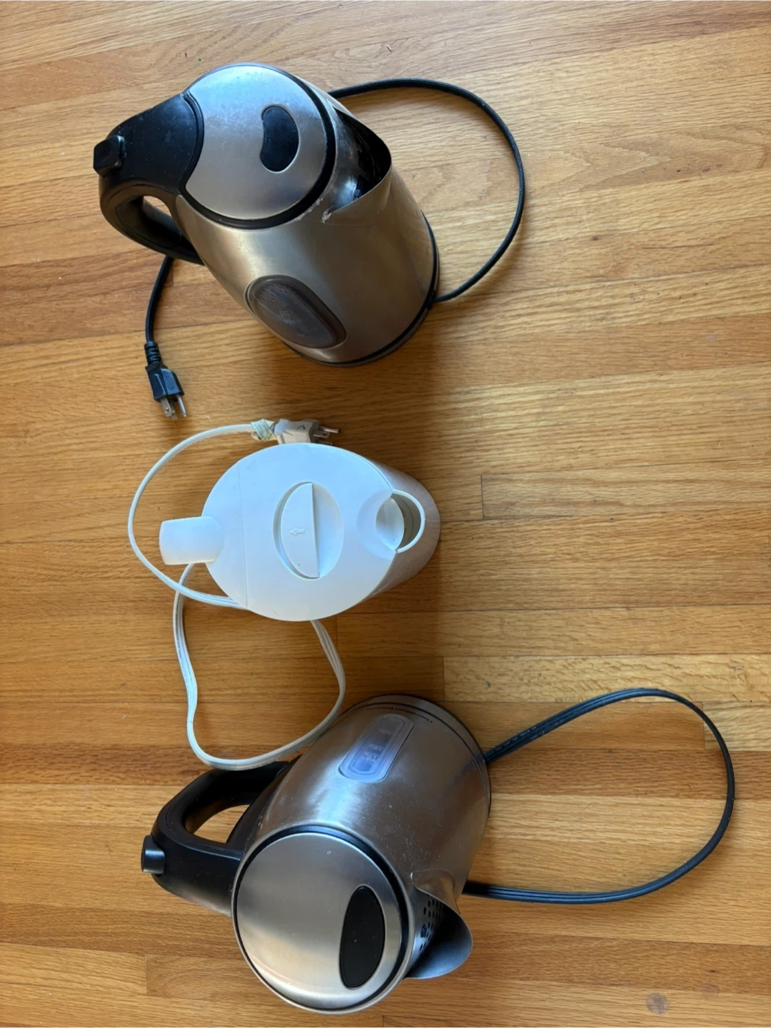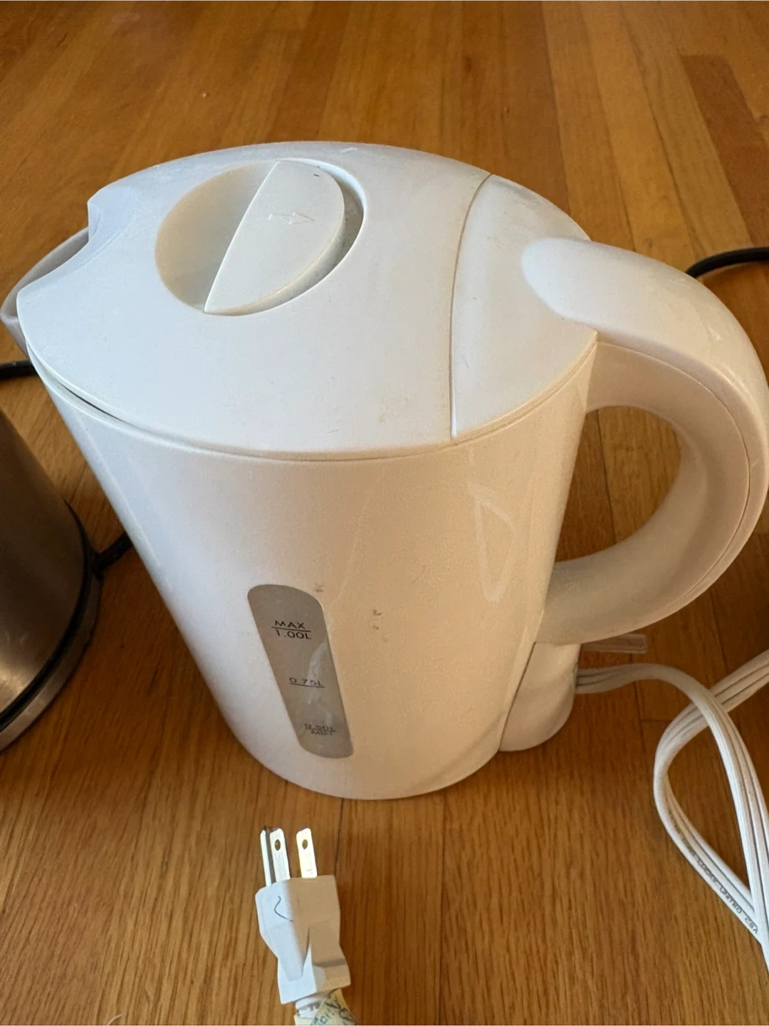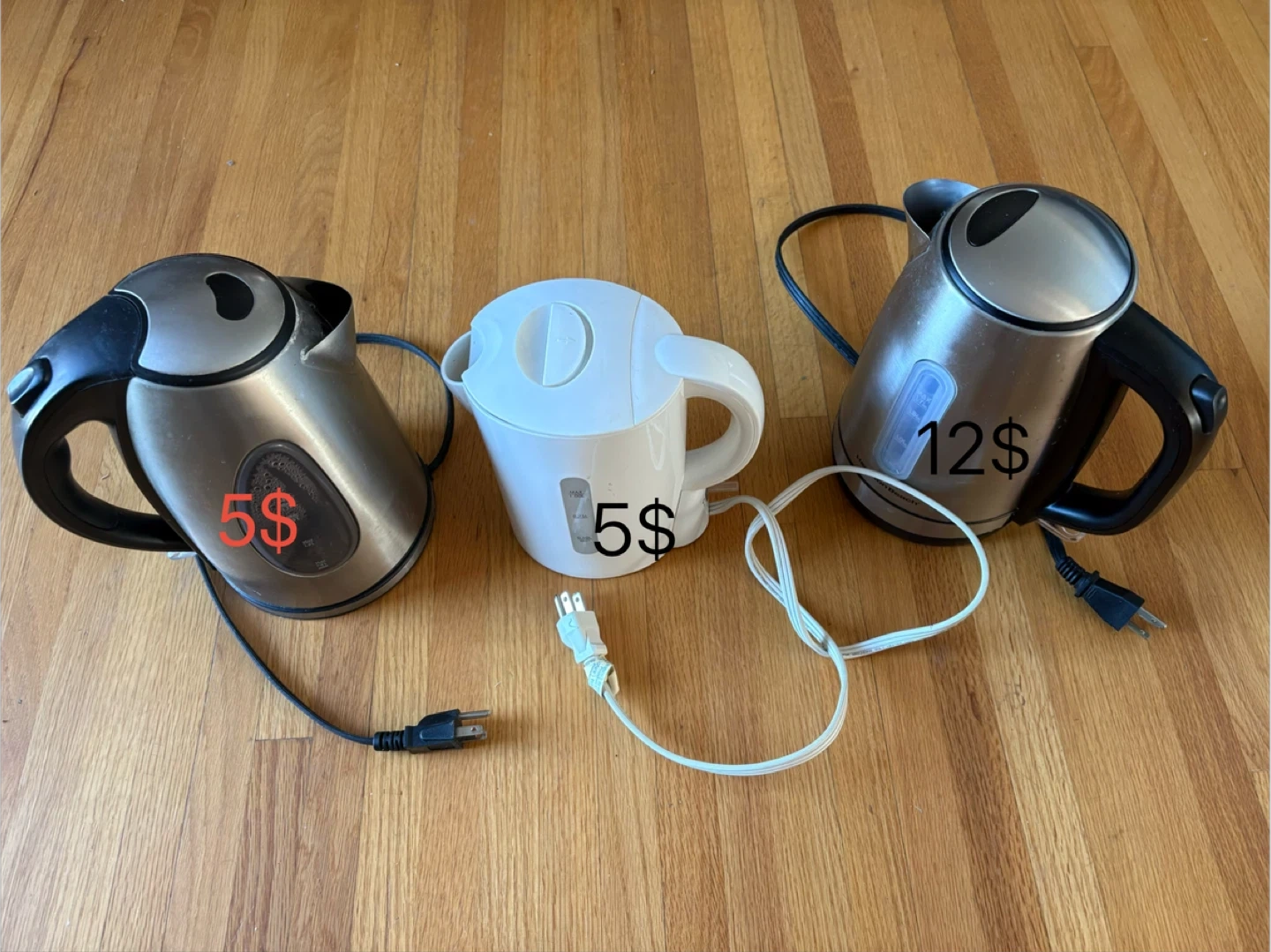 Selling an electric kettle in good working condition. It's perfect for quickly boiling water for tea, coffee, or anything else you need. It has a visible water level indicator and an automatic shut-off feature for safety. The left big one can use in 1L only . Pickup at Morley trail NW