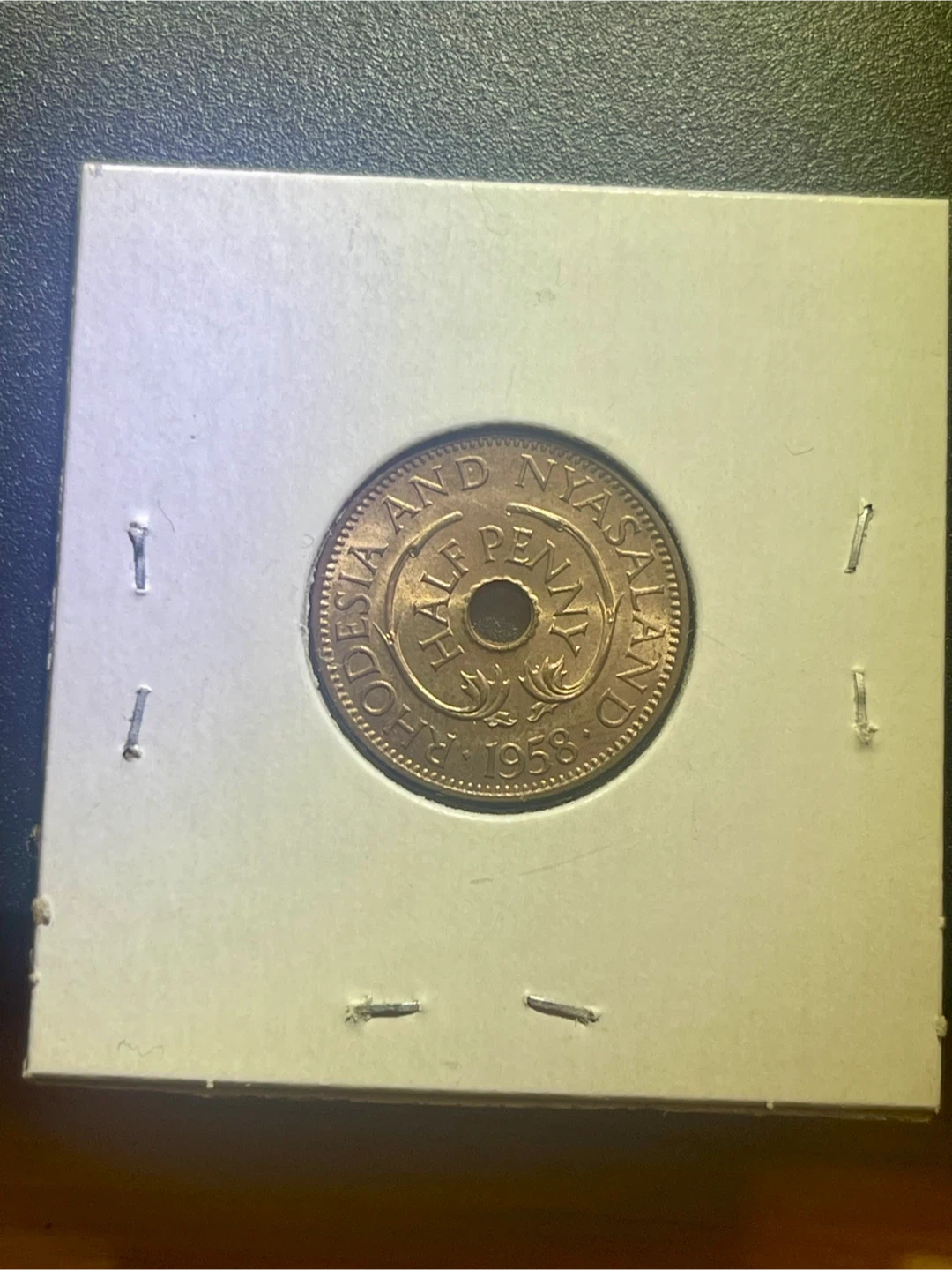 Selling a Rhodesia and Nyasaland Half Penny coin from 1958. It features Queen Elizabeth the Second. A nice piece for coin collectors