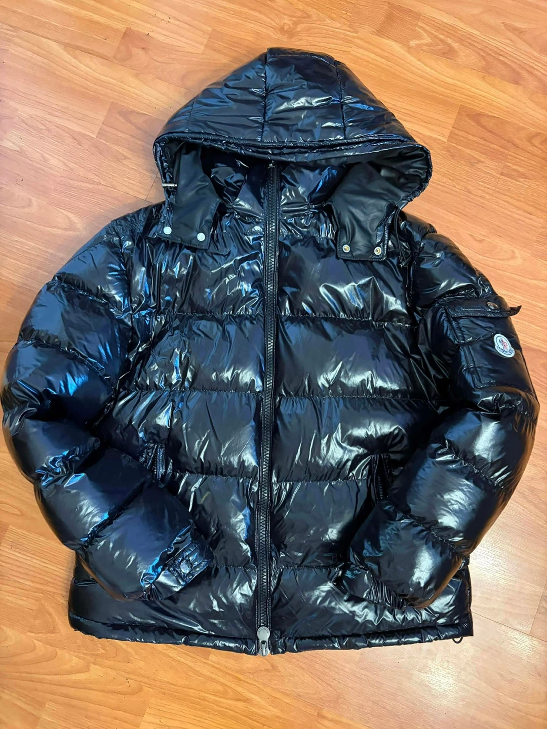 Selling a Moncler black padded down jacket. It's in great condition and perfect for the cold weather! The jacket is very stylish and comfortable, making it a great addition to your wardrobe