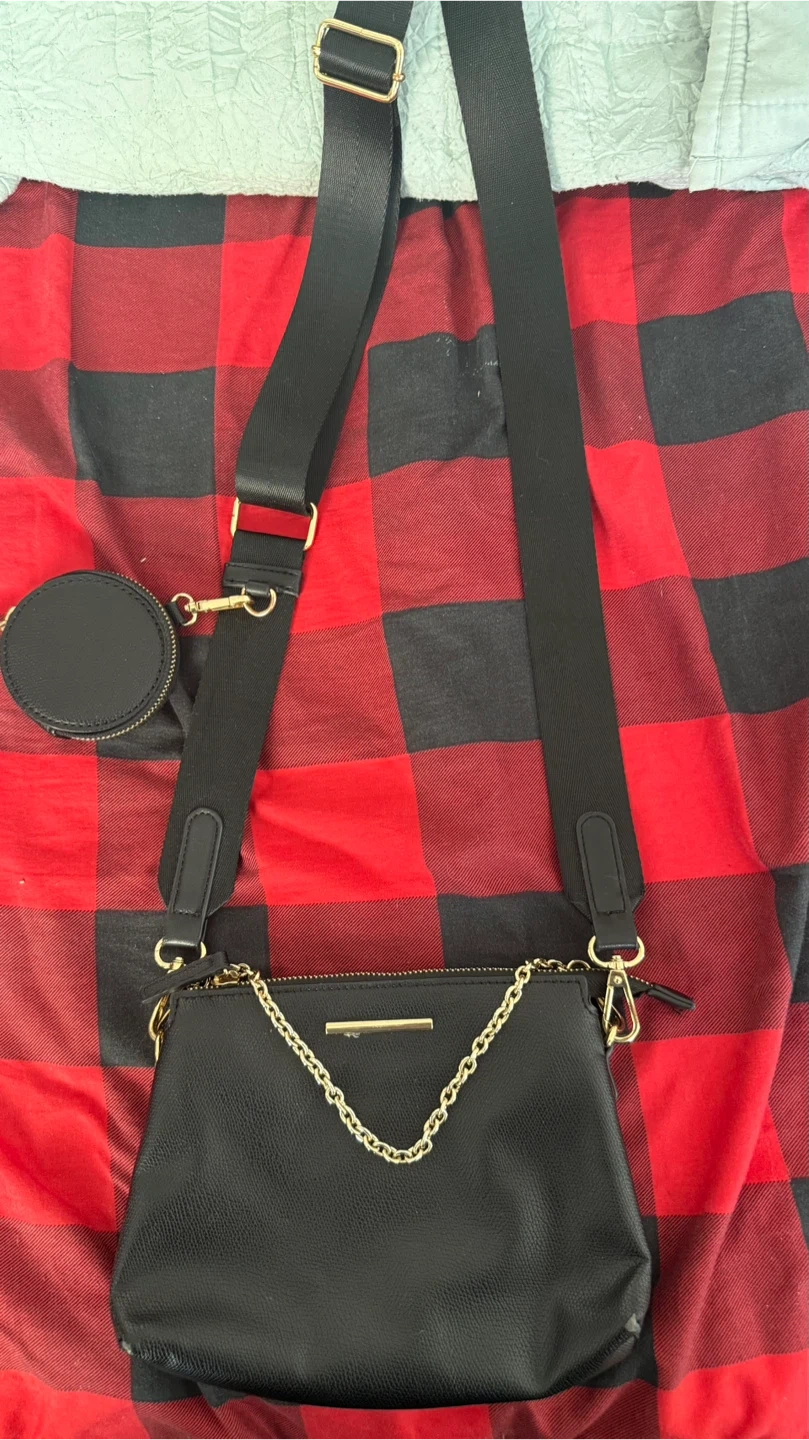 Selling a cute Aldo crossbody bag in black! It features a gold chain detail and a detachable coin purse. Perfect for everyday use or a night out