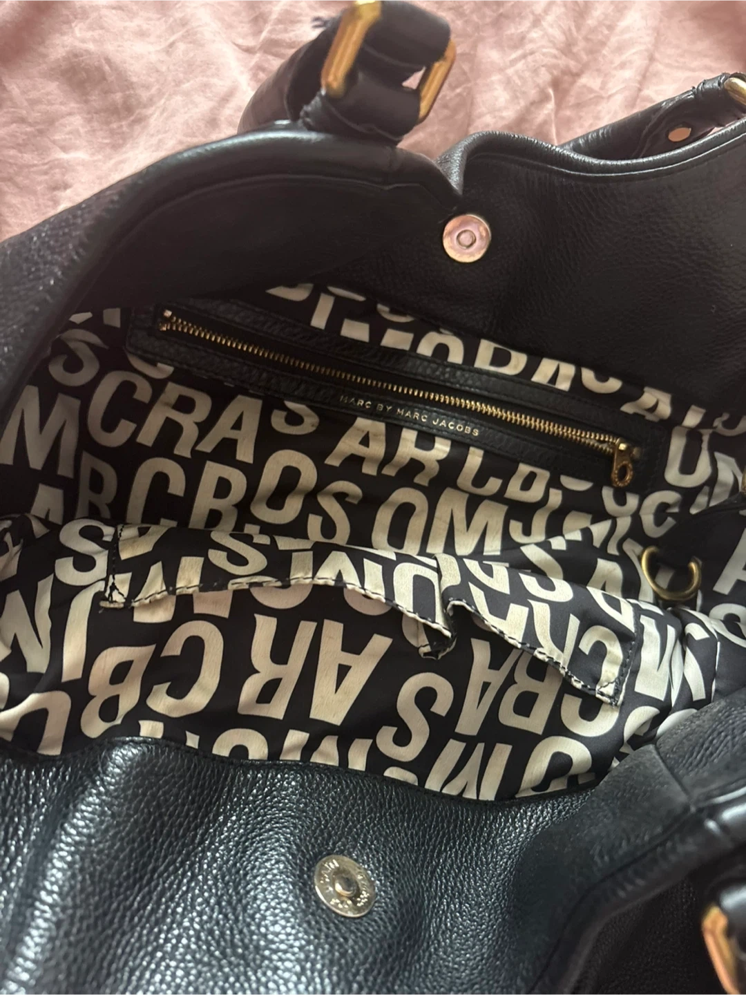 Marc by Marc Jacobs black leather hobo bag. It's in great condition and ready for a new home! The interior lining features the brand's name in a repeating pattern. From a non smoking home 🩷🎀