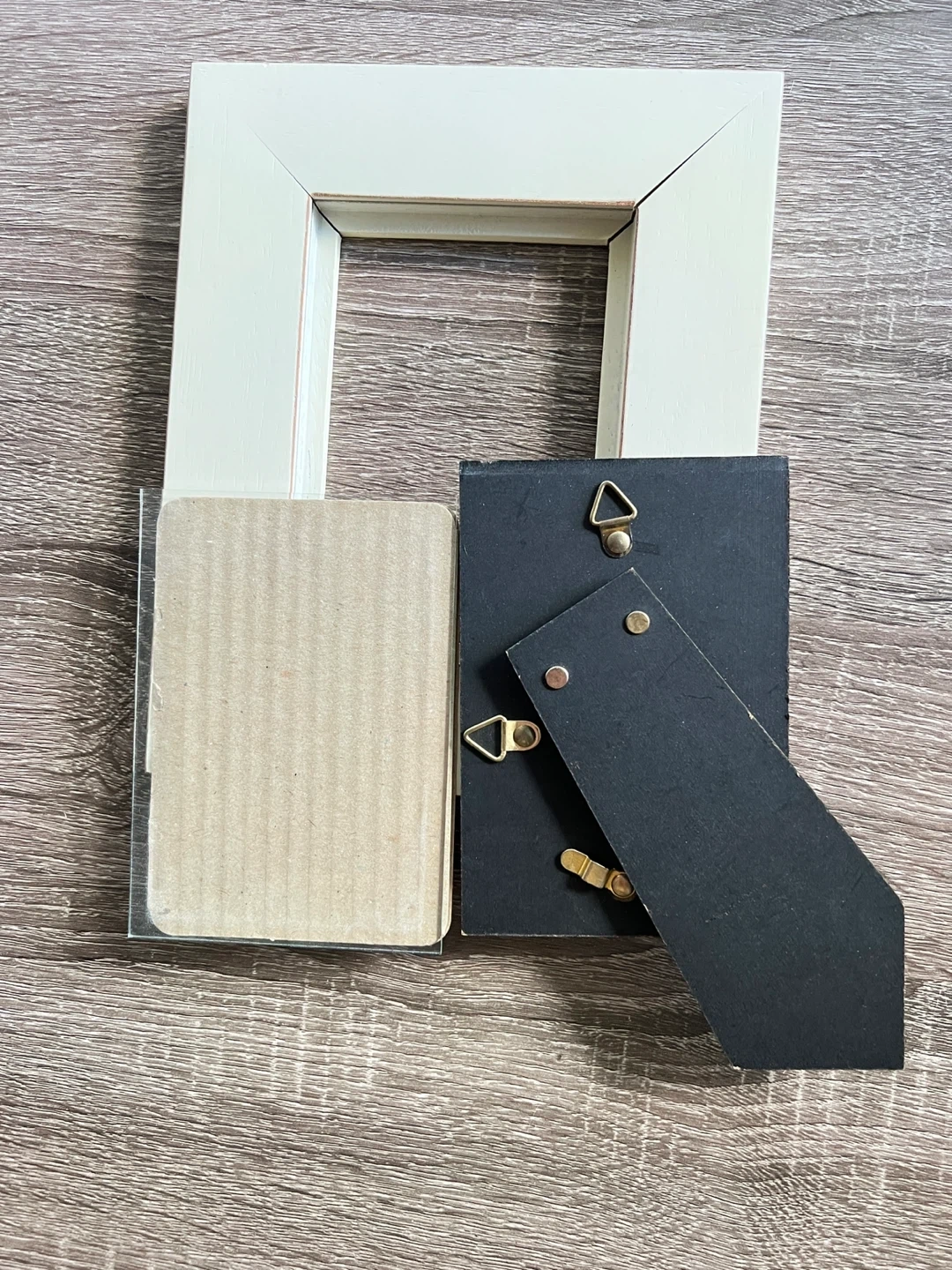 Frame fits a 4.5 x 3 inches photo. There are cracks in the frame but it gives an antique kind of look. Maybe you can reuse the glass and the backing for an old frame you have.