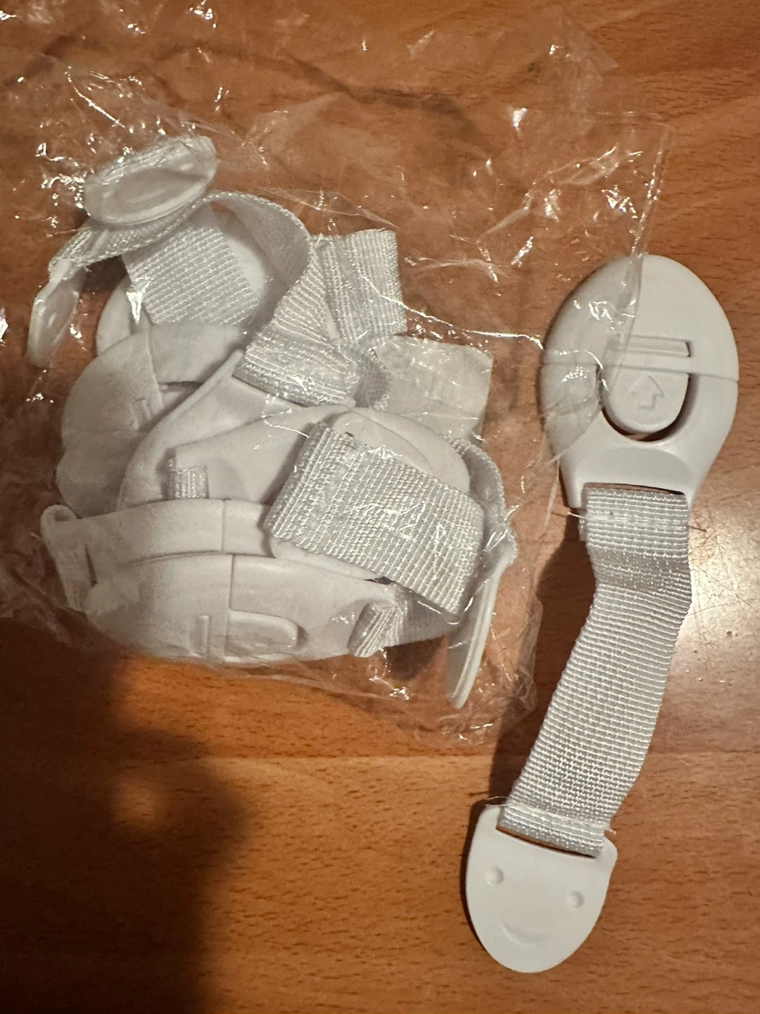 Selling a set of 8 white child safety locks. These are perfect for keeping little ones safe around the house. They're easy to install and provide peace of mind. Great for cabinets, drawers, and appliances