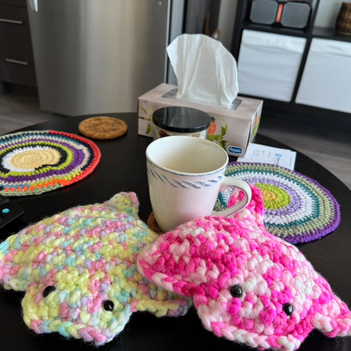 Selling these adorable handmade crochet items! There's a pink starfish and a few different chicken designs. They're all in great condition and would make a cute addition to any room