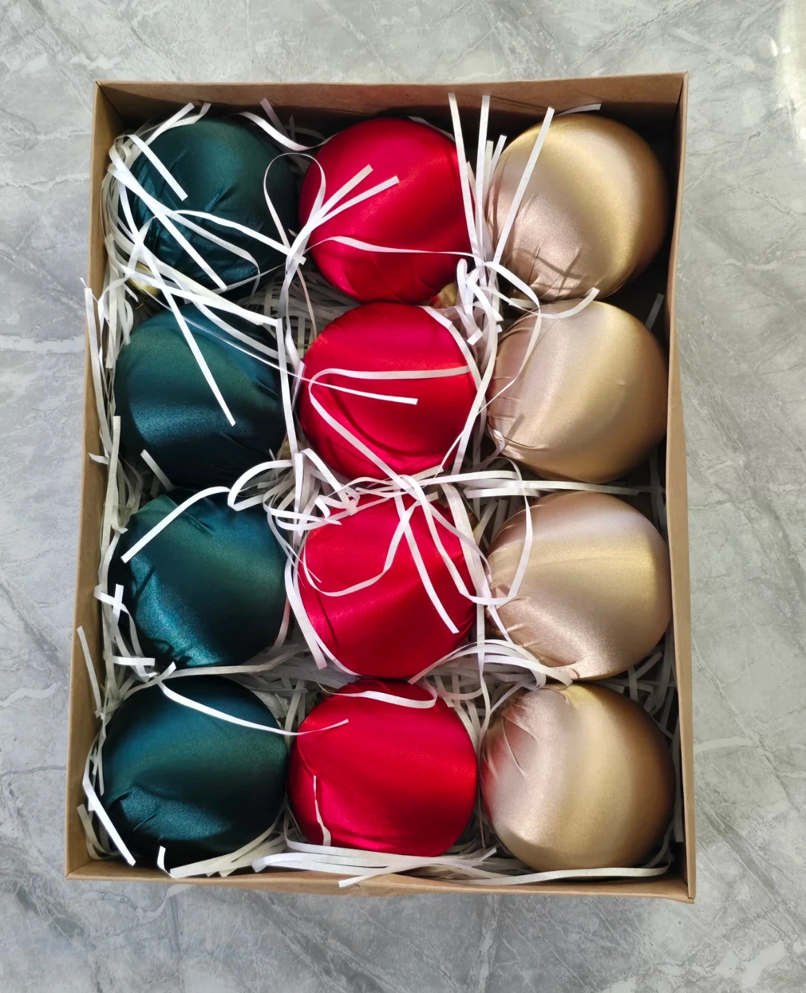 3" simgoing 12 pcs satin christmas decoration (red, green, champagne gold