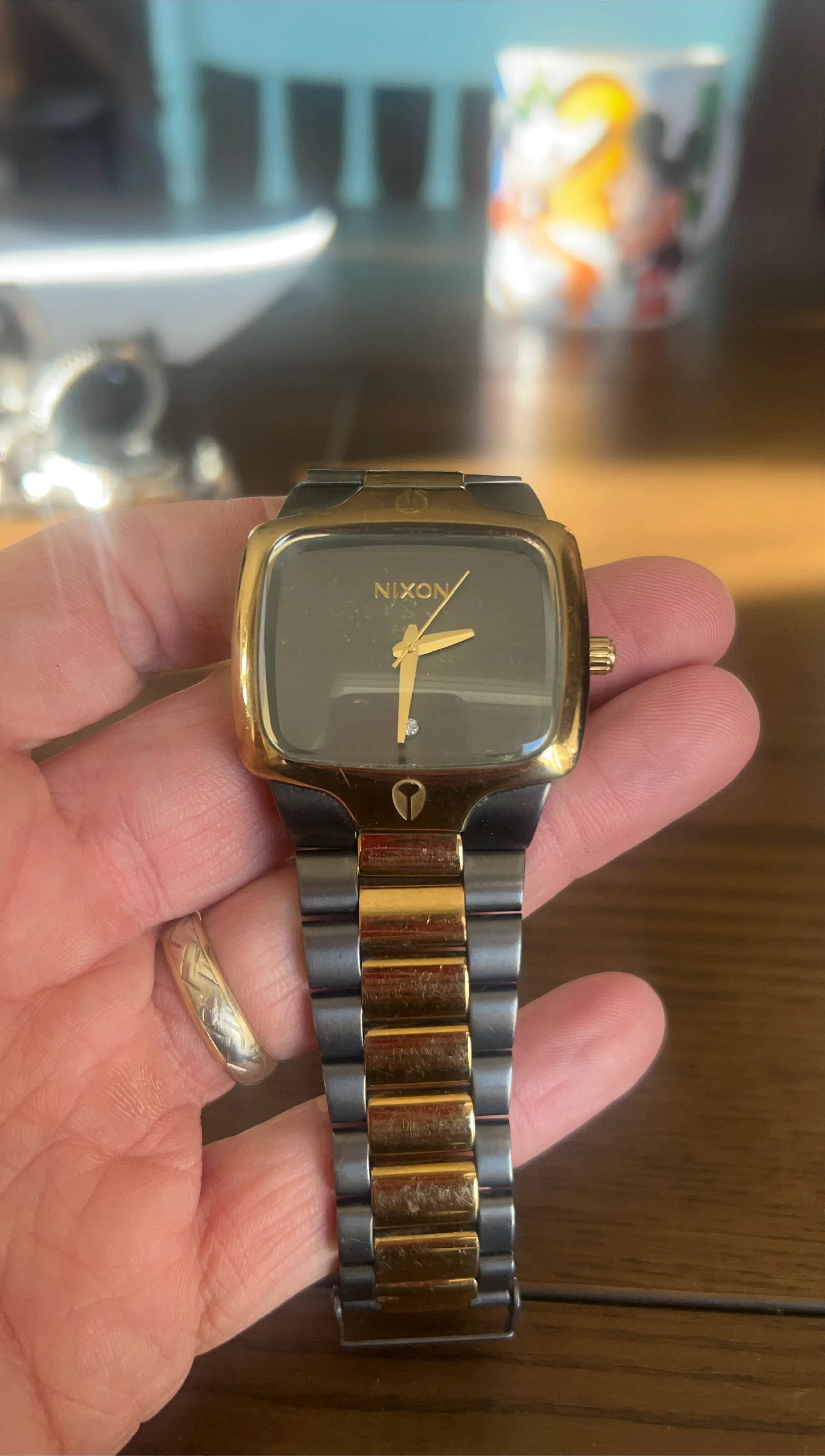 Selling a Nixon watch with a gold and black finish! It's in good condition and ready for a new home