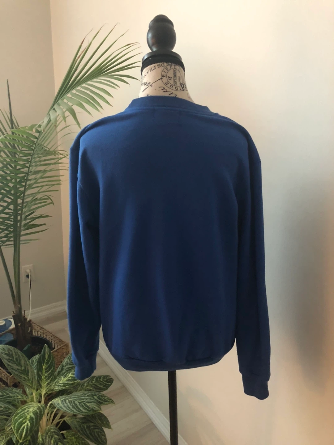 • The "V-Stitch" Detail: If you look at the neckline in the second photo, there is a small triangular "V" stitching. This is a classic vintage athletic-wear detail that was very popular on sweatshirts from the 1980s and early 90s.