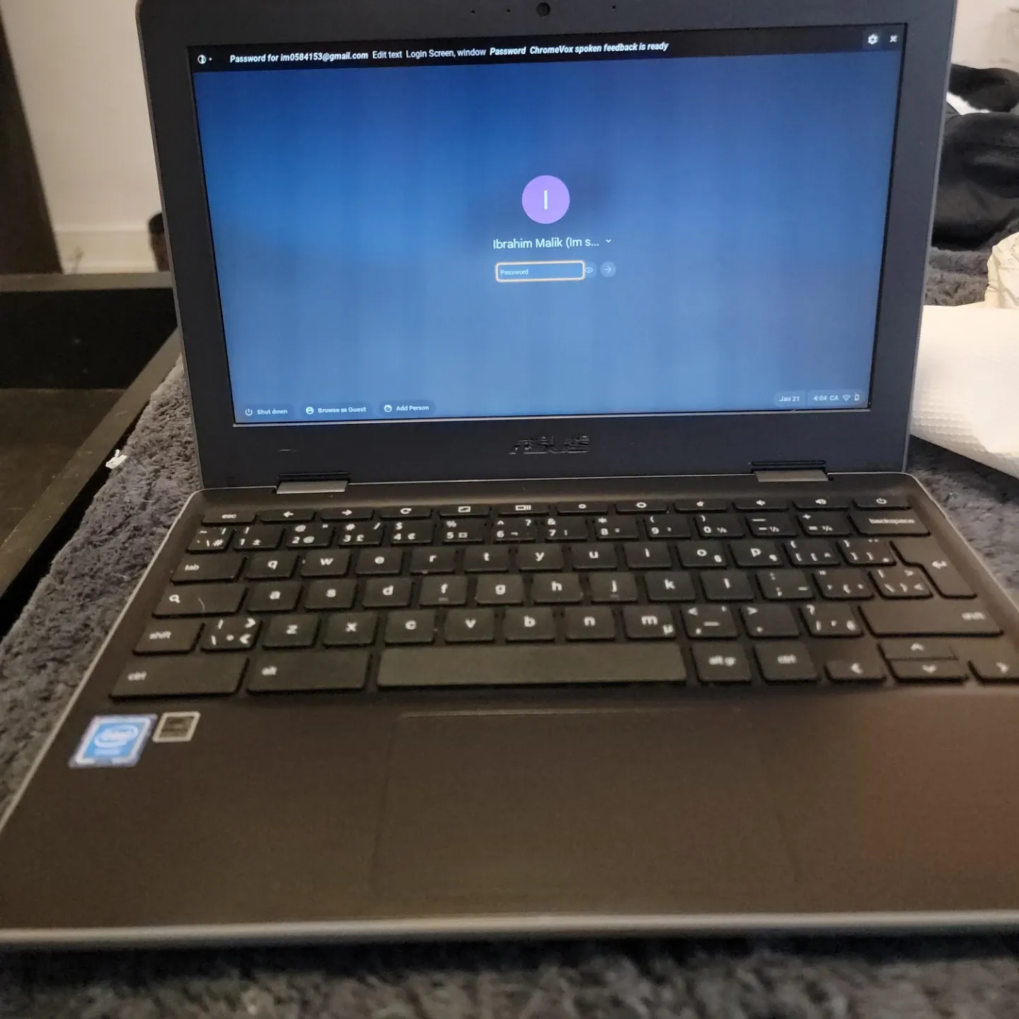 Selling my Asus Chromebook! It's in great condition and perfect for school or work. It's lightweight and portable, making it easy to carry around. This Chromebook would be great for anyone who needs a simple and reliable laptop!
