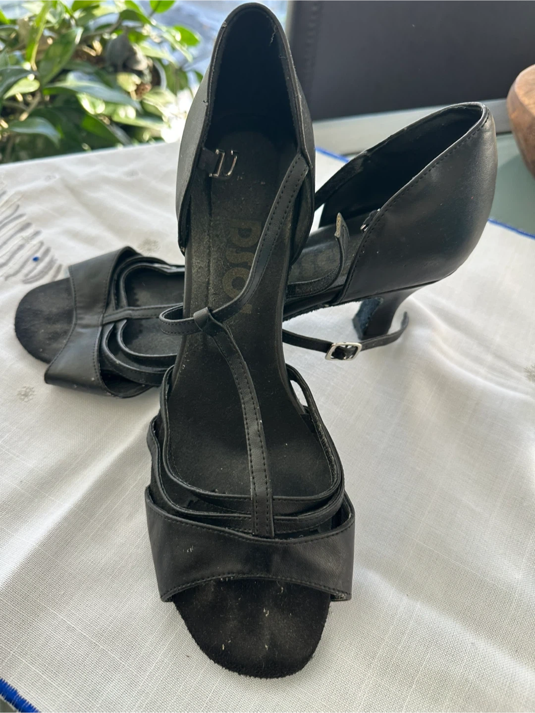 Selling a pair of Dancelife dance shoes in size 9W. They are black leather with a strap and heel. Perfect for dance practice or performance!