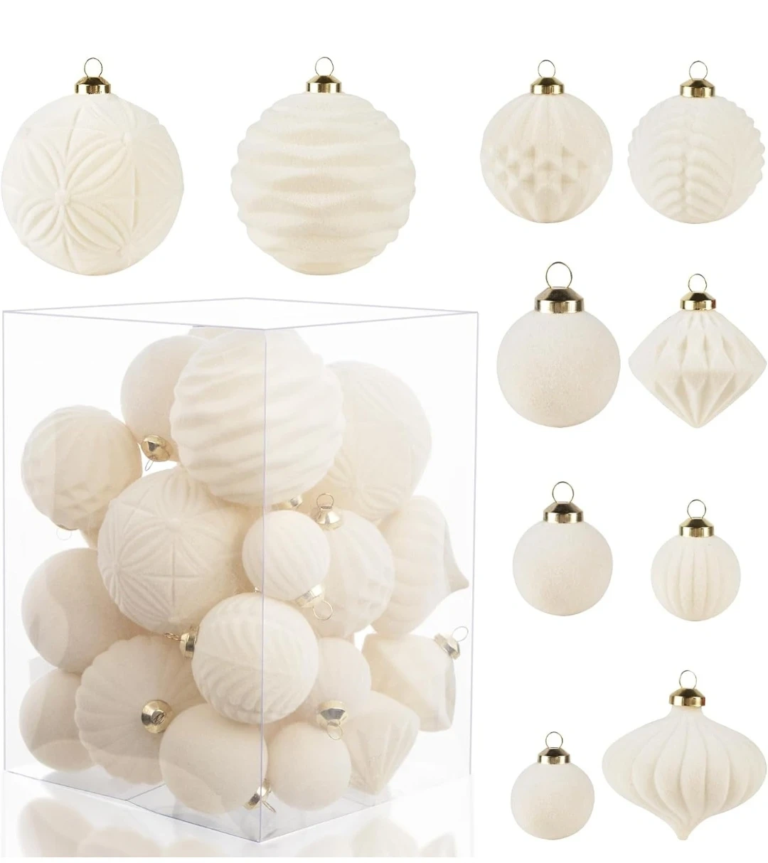 New 35pcs Velvet Christmas Decor - Creamy White