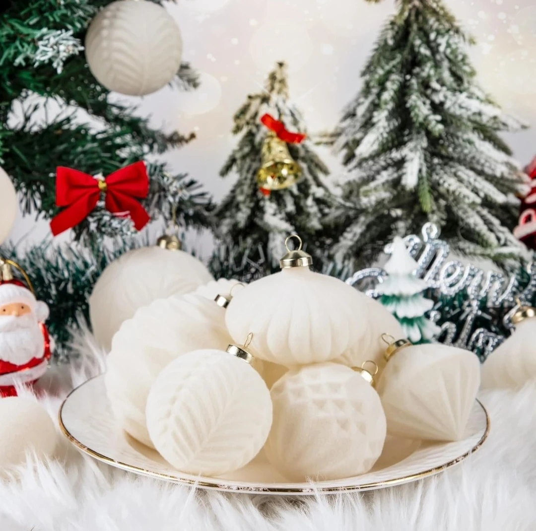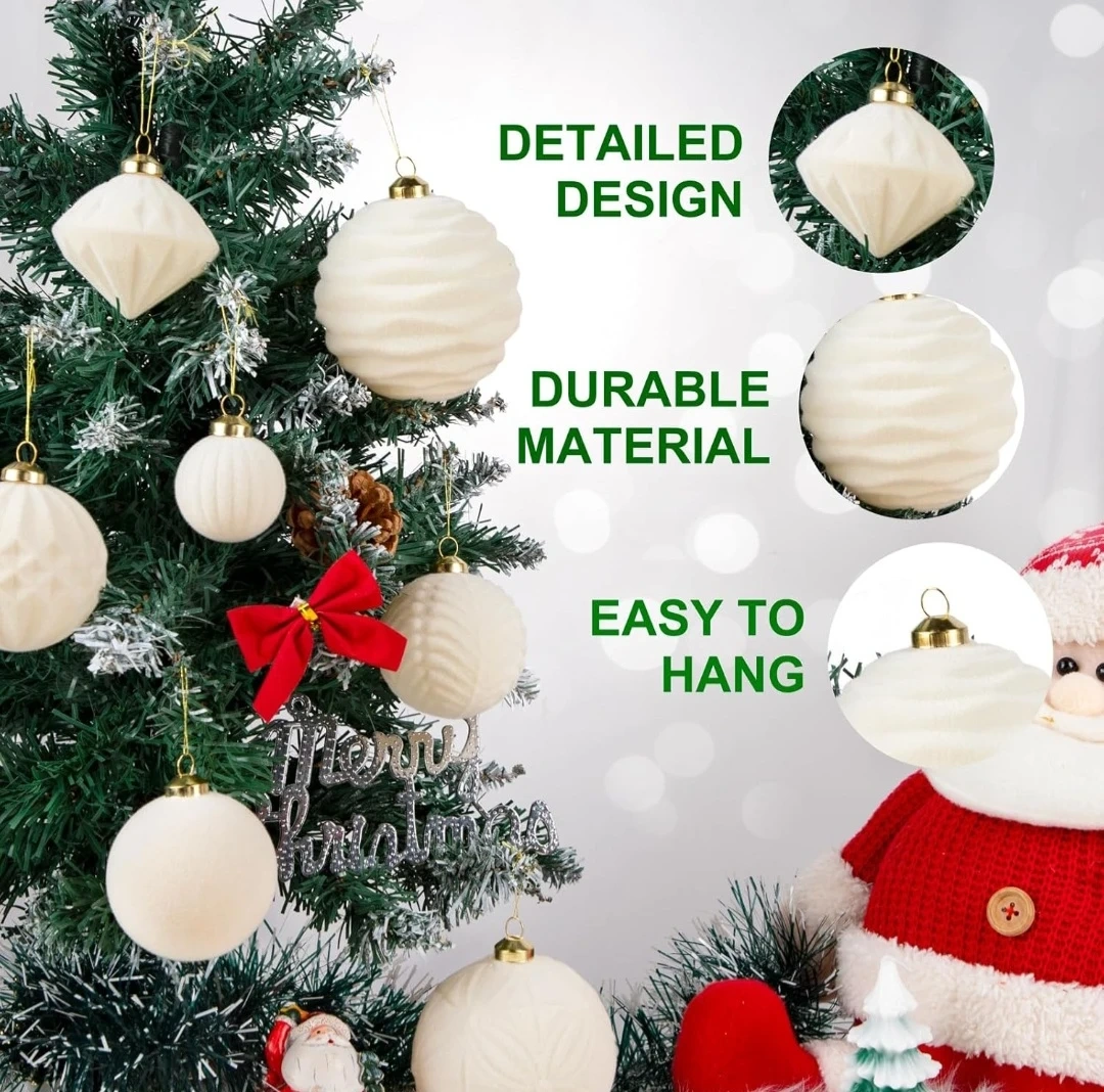 New 35pcs Velvet Christmas Decor - Creamy White