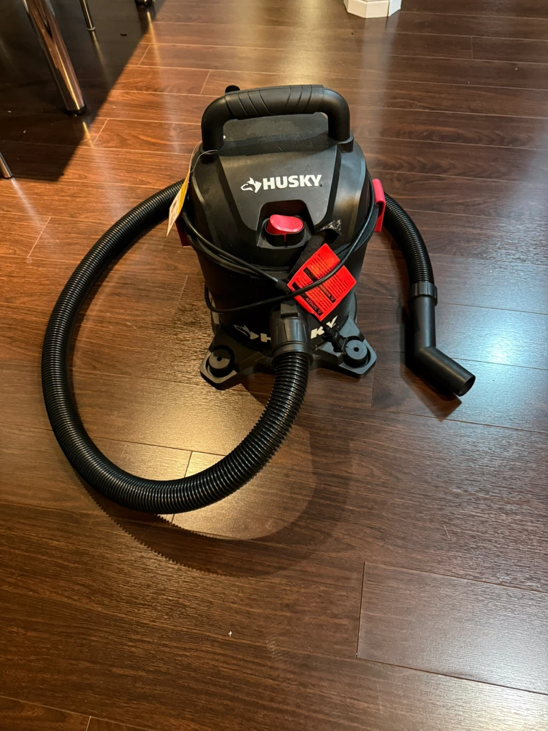 Selling a Husky wet/dry vacuum. It's in great shape and ready to tackle any mess! Perfect for cleaning up spills, dirt, and debris around the house or in the garage. It's a reliable and powerful tool to have on hand