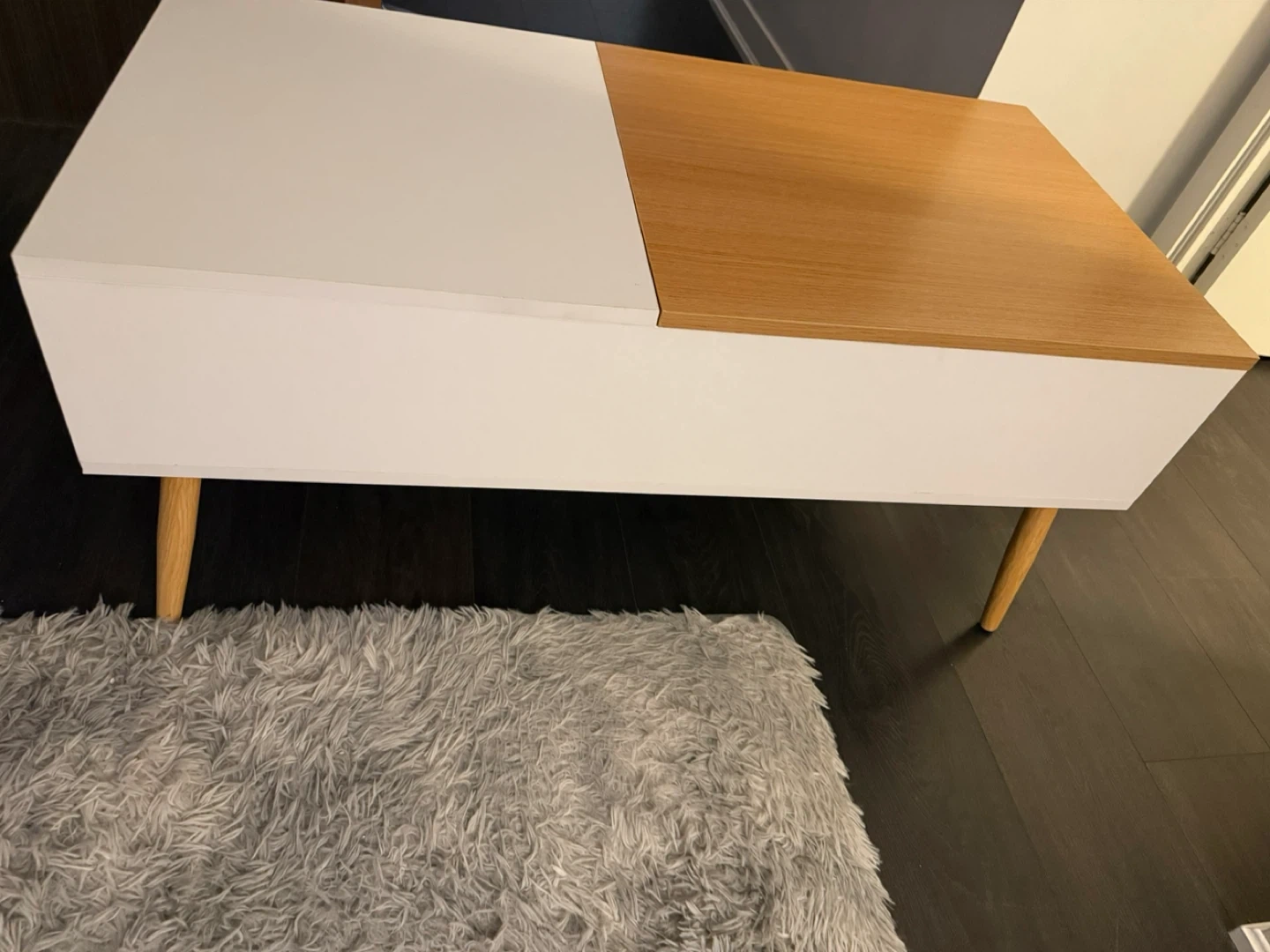 Selling this popular lift-top coffee table! It's in great shape and super functional for small spaces. The lift-top feature makes it easy to work or eat from the couch, and there's storage inside for books or blankets. The table is a mix of white and wood tones, so it fits in with lots of decor styles. It also has a side drawer if you need more storage in a condo space. Super mint condition!