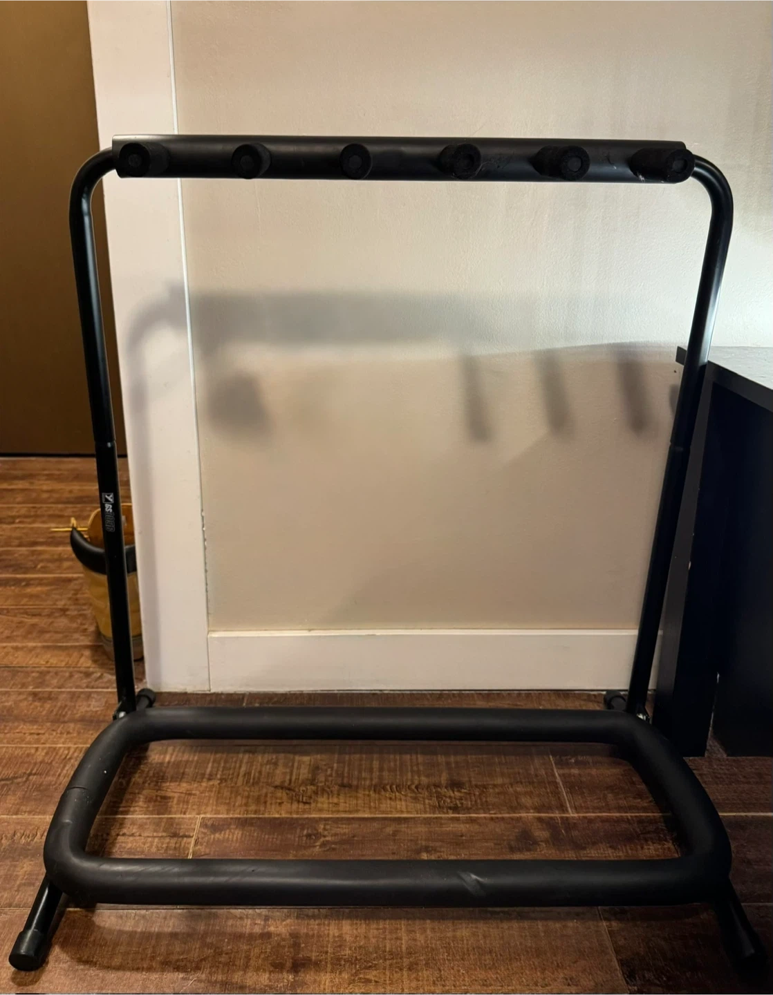 Selling a guitar stand that can hold up to 6 guitars. It's in good condition and perfect for organizing your instruments at home or in a studio.