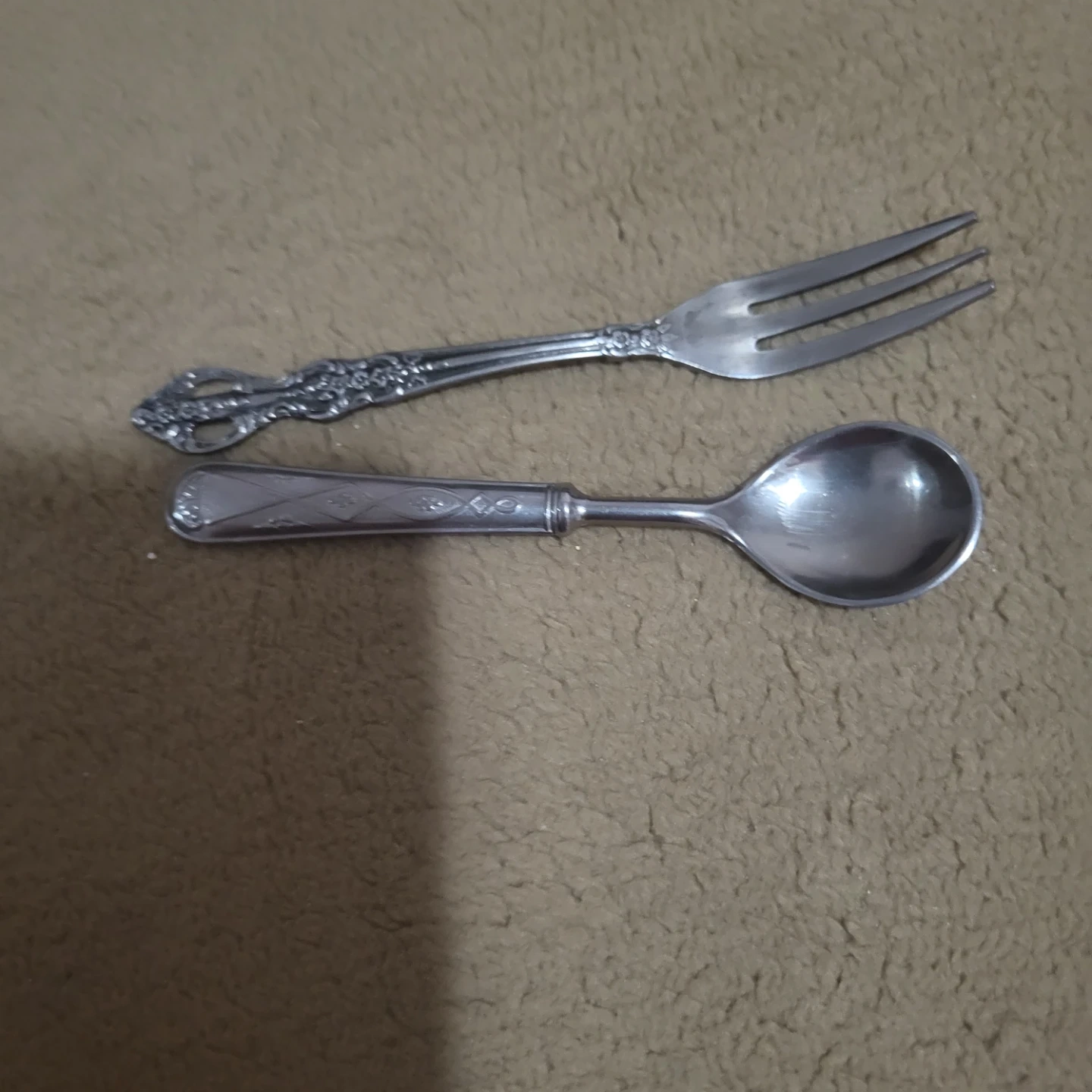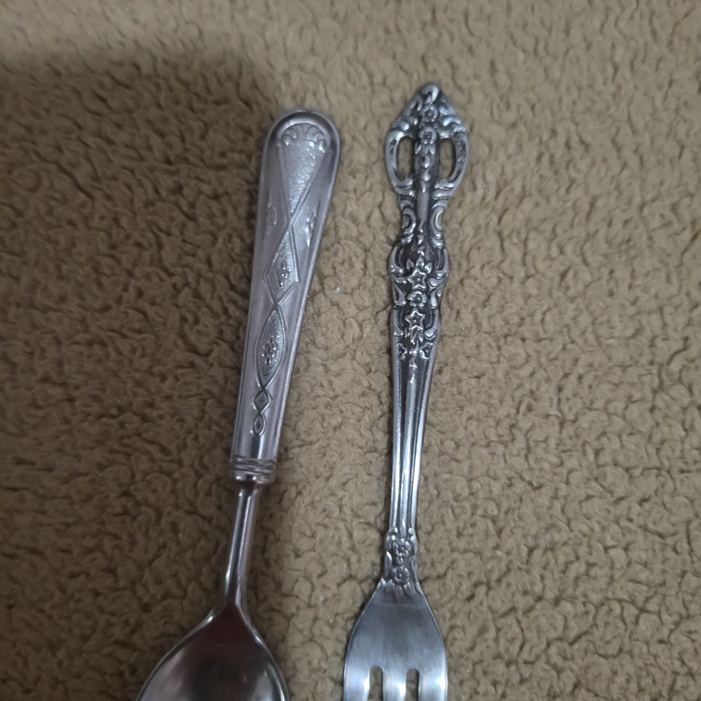 Selling a vintage silver plated fork and spoon set. They have intricate designs on the handles. Perfect for adding a touch of elegance to your table setting!