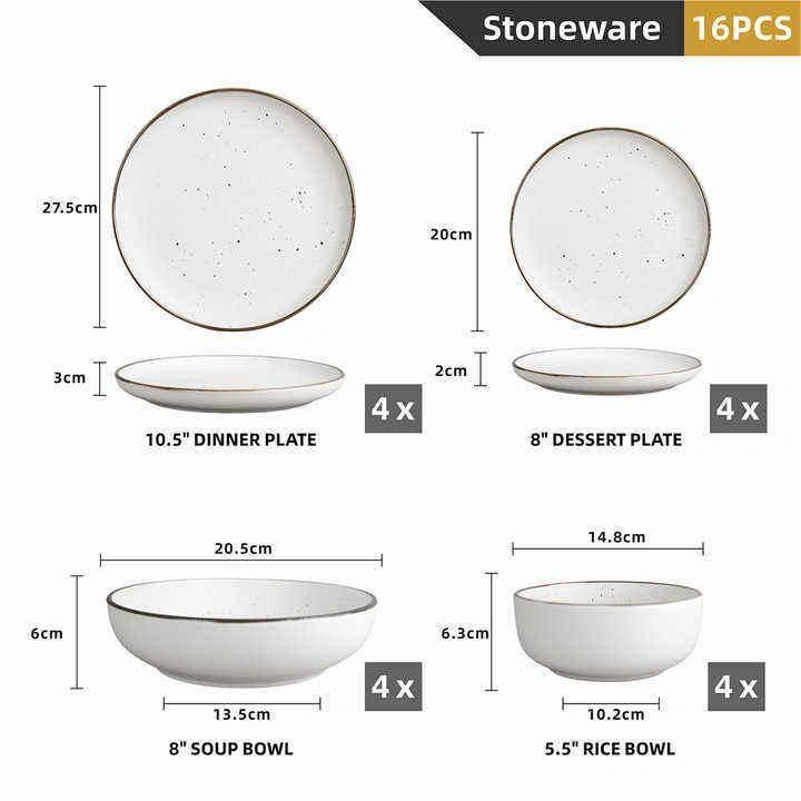 Dinner Set 16 Pcs, Premium Ceramic ,Includes Dinner Plates, Side Plates, Rice Bowls & Soup Bowls, Elegant Modern Dish Set for Everyday Dining & Special Occasions.