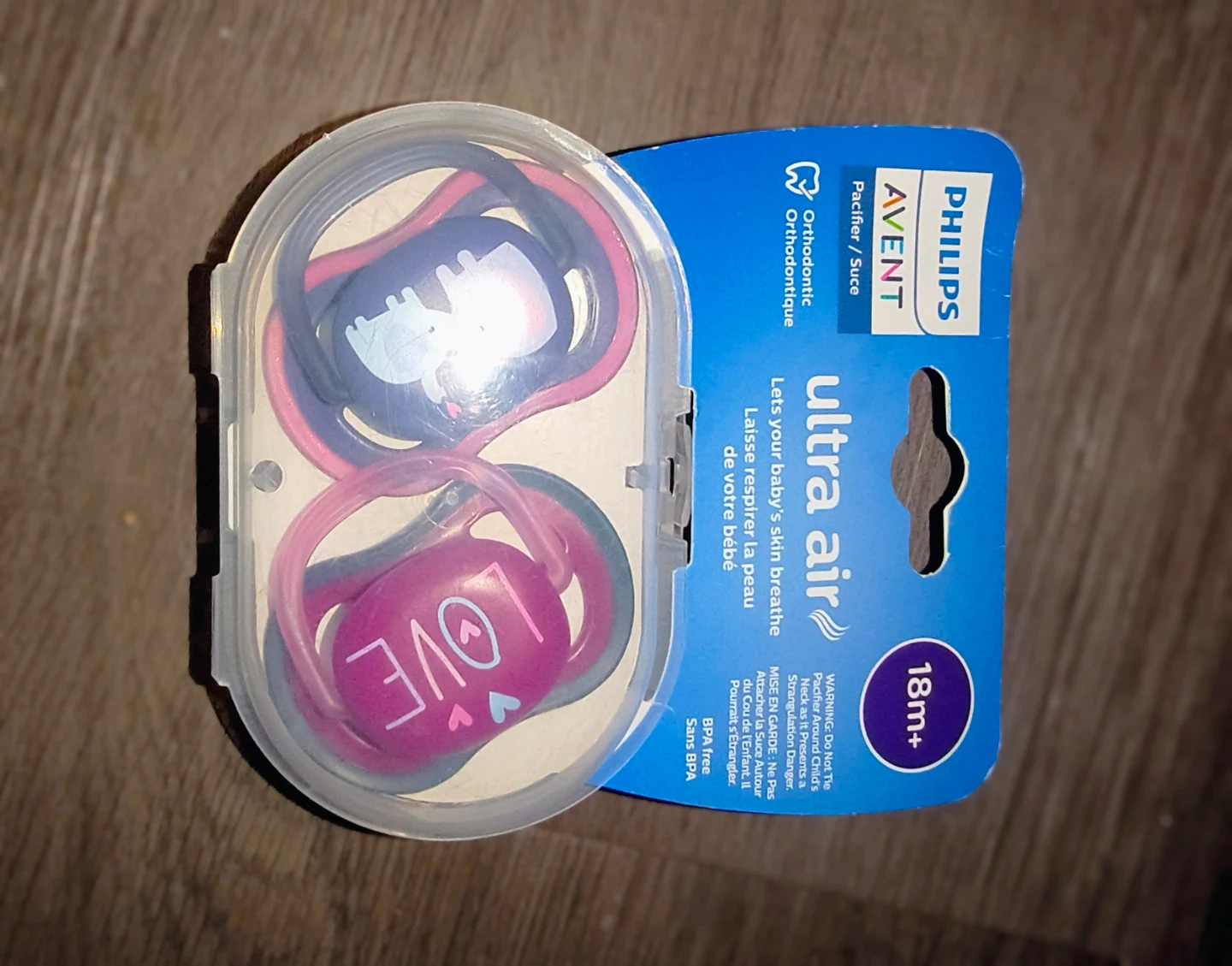 Selling a pack of Philips Avent Ultra Air pacifiers! These are designed for babies 18 months and older. The pacifiers are orthodontic and BPA-free, letting your baby's skin breathe easy. They come in a convenient case to keep them clean and safe