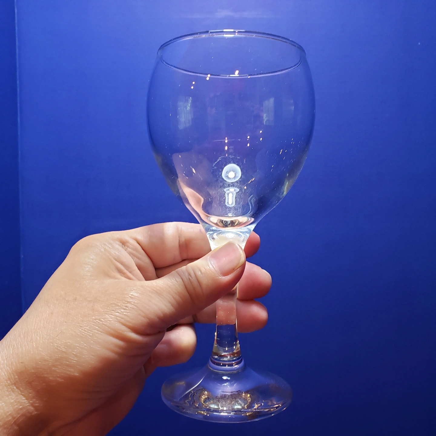 • One wine glass 7” tall, 2.75” diameter rim, 10 ounces capacity