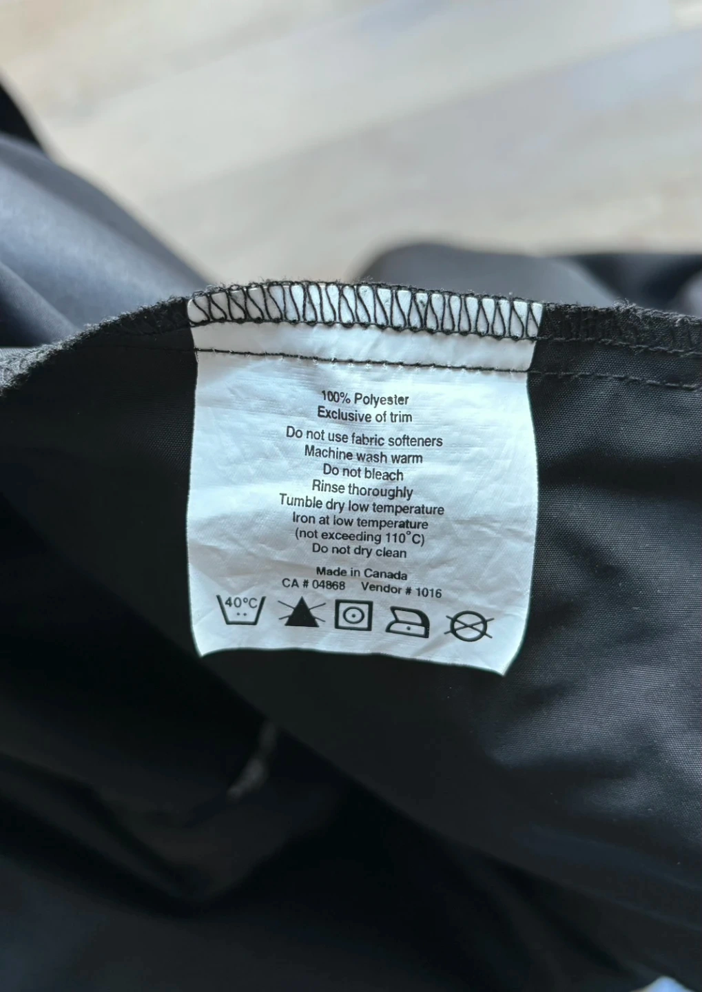 Large MEC jacket, tailored cut that fits over layers but doesn't billow in the wind when you're riding.