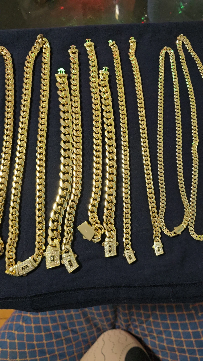 Selling a set of gold chains and bracelets. They have a classic curb link design. Perfect for adding a touch of style to any outfit!