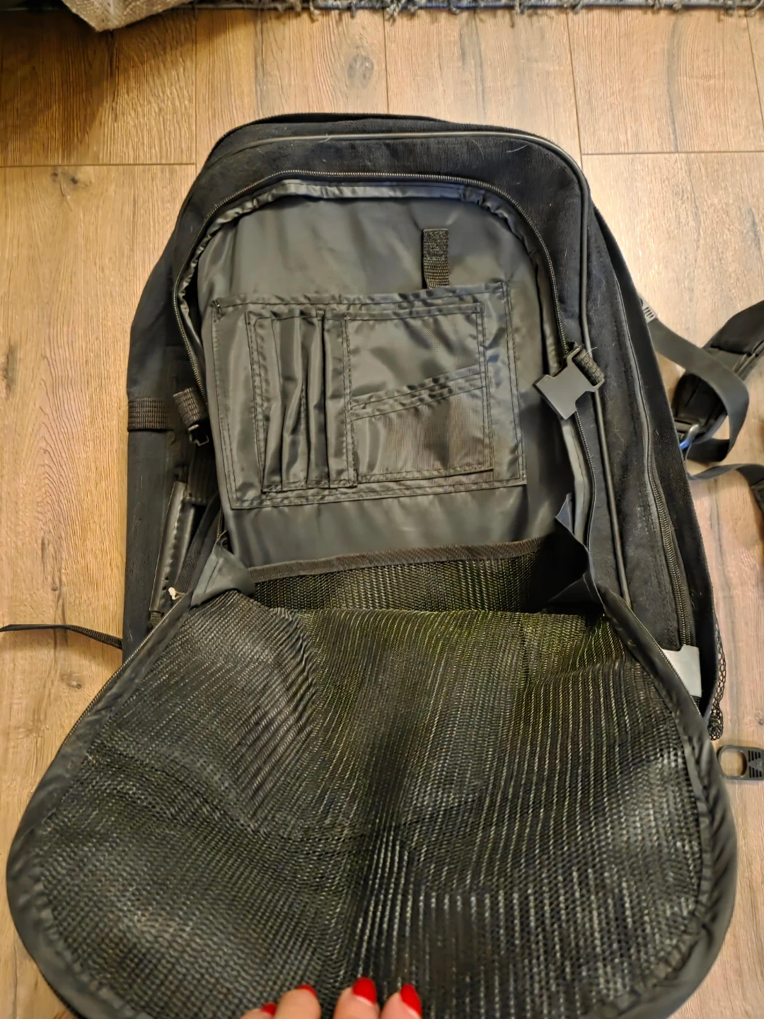 This is a Samboro wheeled backpack in black. It's in great shape and ready for its next adventure! It has a retractable handle and backpack straps for easy carrying. Lots of compartments for organization too. A bit dusty, but otherwise in excellent condition. All zippers and buckles work well. No rips.