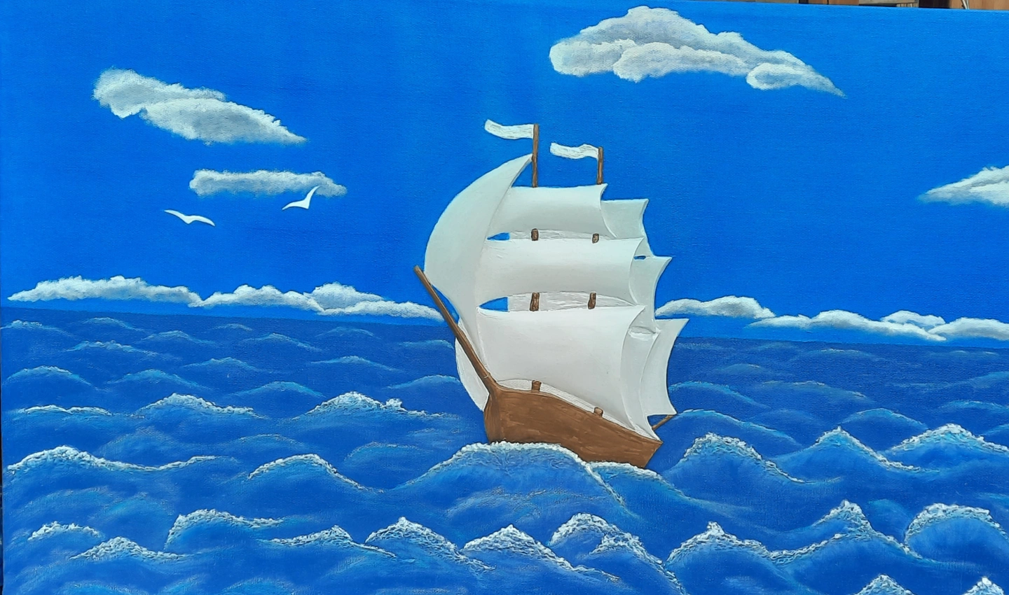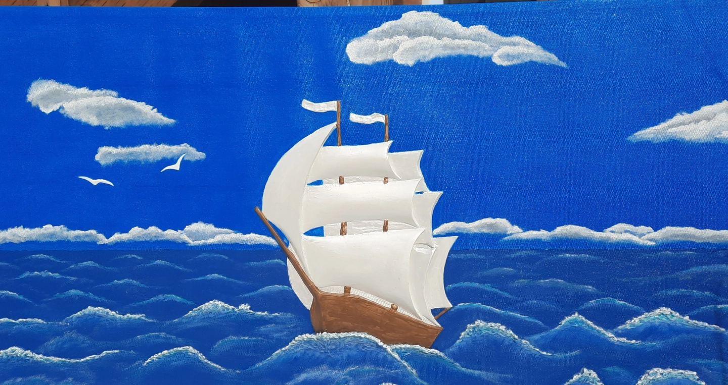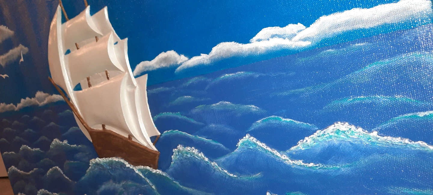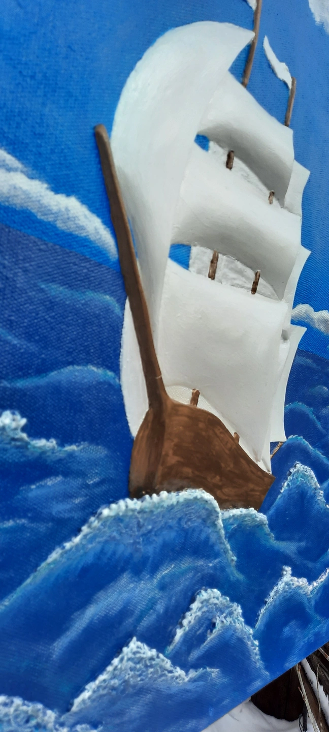 Sailboat at sea-3D Sculptural painting on canvas.Wall art paint.
