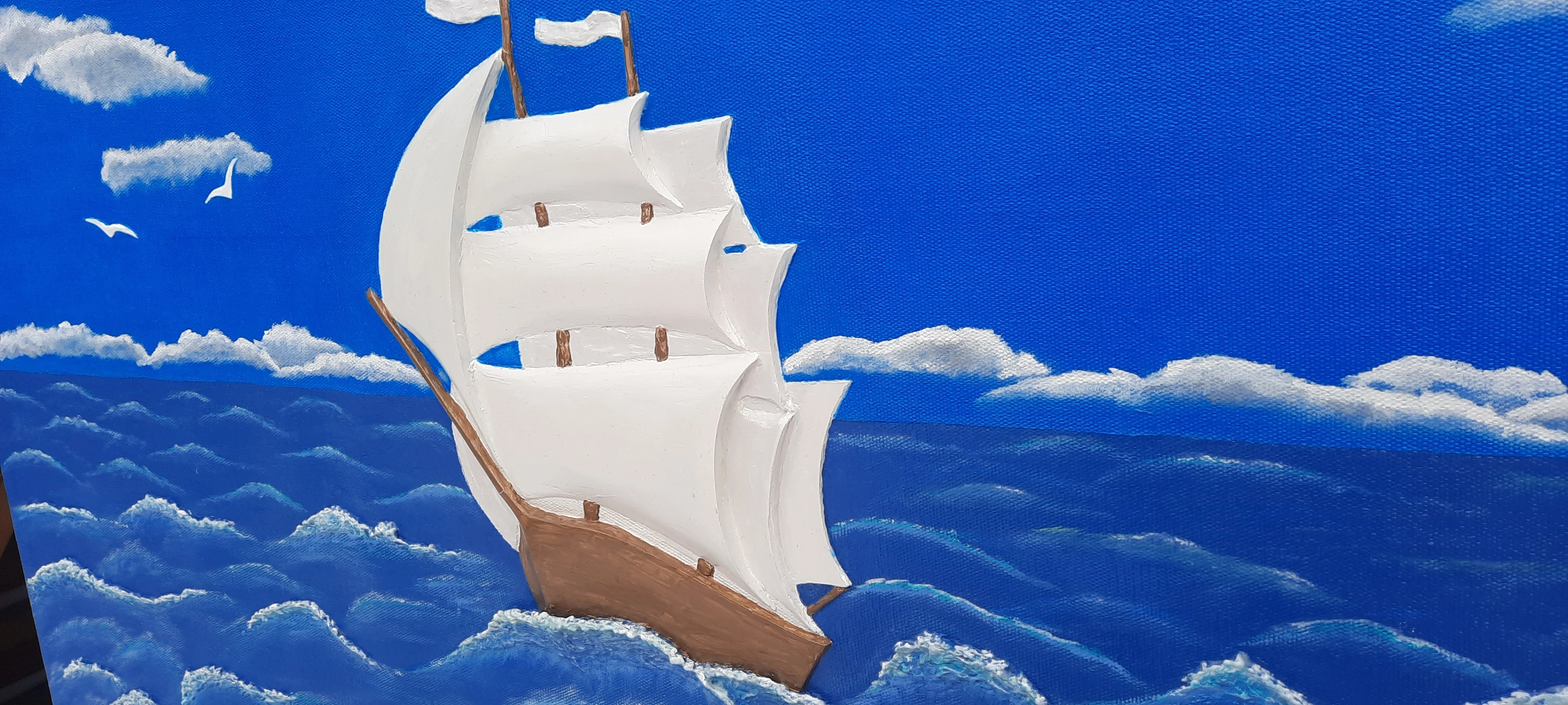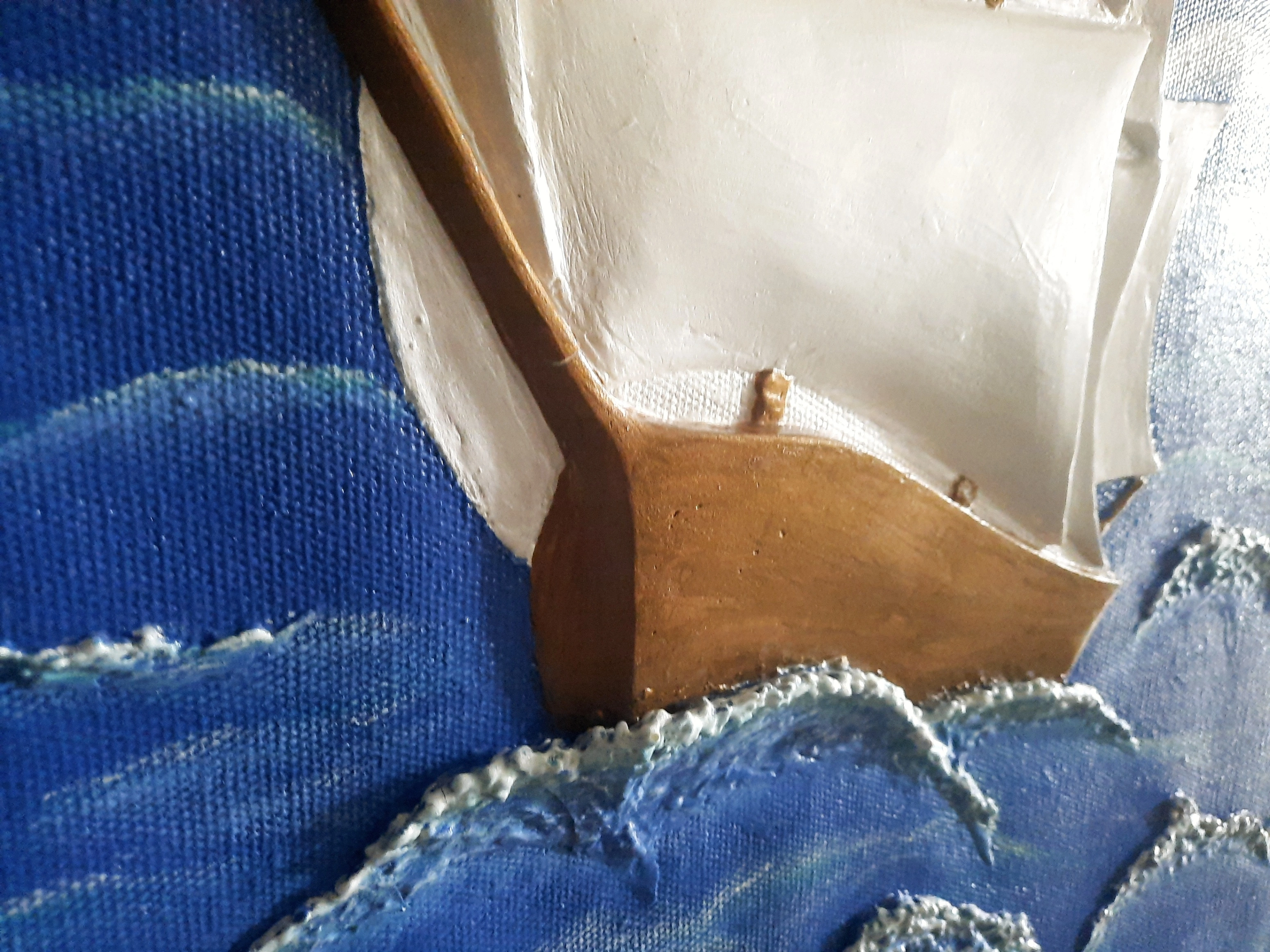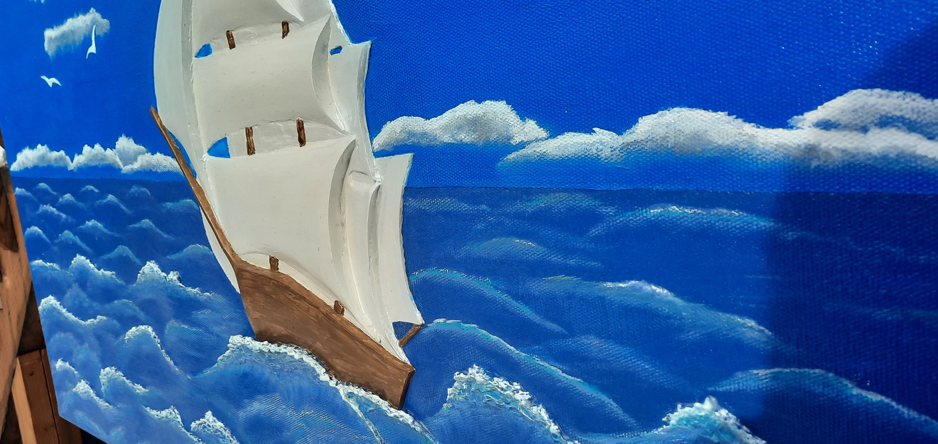 Sailboat at sea-3D Sculptural painting on canvas.Wall art paint.