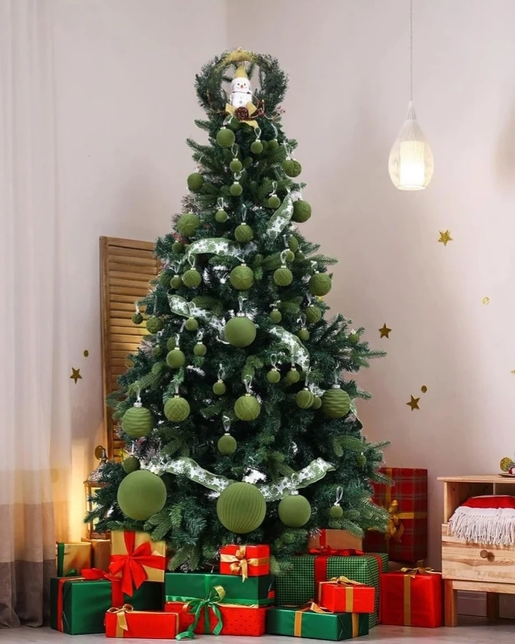 40Pcs Green Velvet Christmas Ornaments Set, Assorted Flocked Christmas Baubles Decorations, Shatterproof Christmas Balls Hanging Decor for Xmas Tree/Home/Party/Holiday (Green)