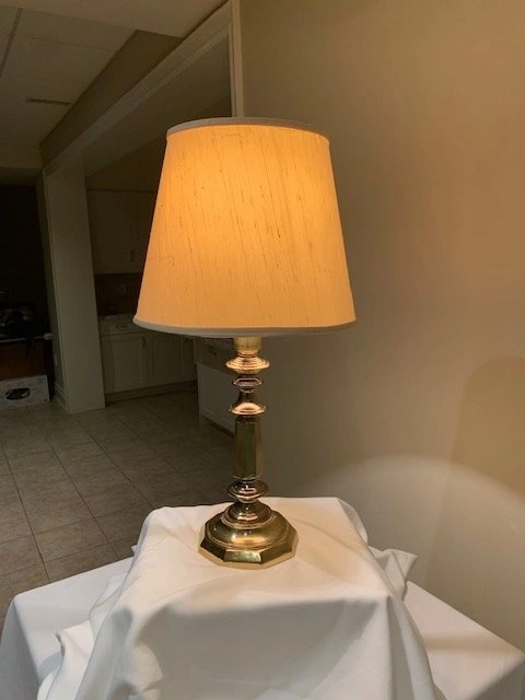 Vintage Stiffel Table Lamp. Very heavy piece with original shade. From the 1960's - 1970's. Height is 25" (with shade), base is 7 1/2". From a smoke-free, pet-free home. Located in Richmond Hill near Bathurst and King Rd.