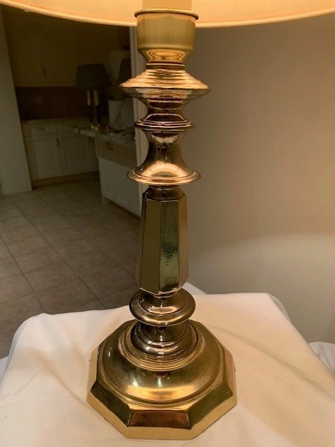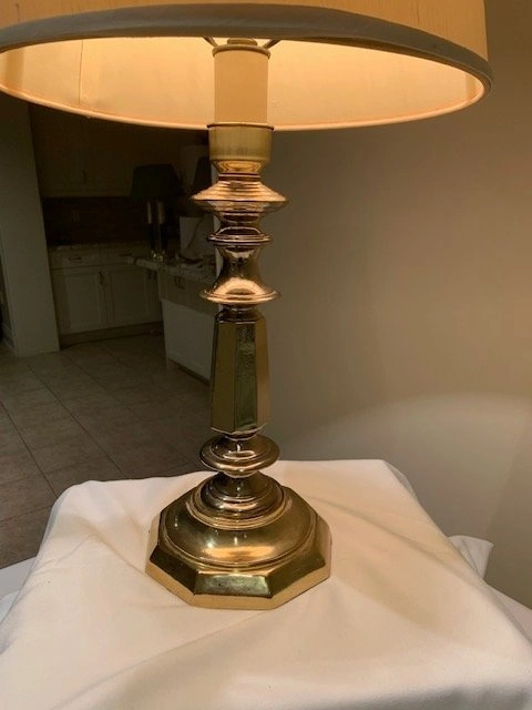 Vintage Stiffel Table Lamp. Very heavy piece with original shade. From the 1960's - 1970's. Height is 25" (with shade), base is 7 1/2". From a smoke-free, pet-free home. Located in Richmond Hill near Bathurst and King Rd.