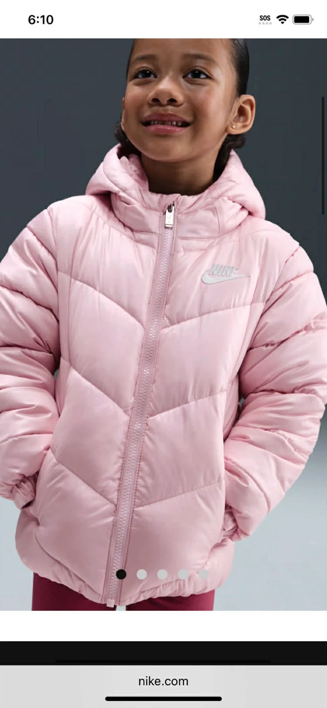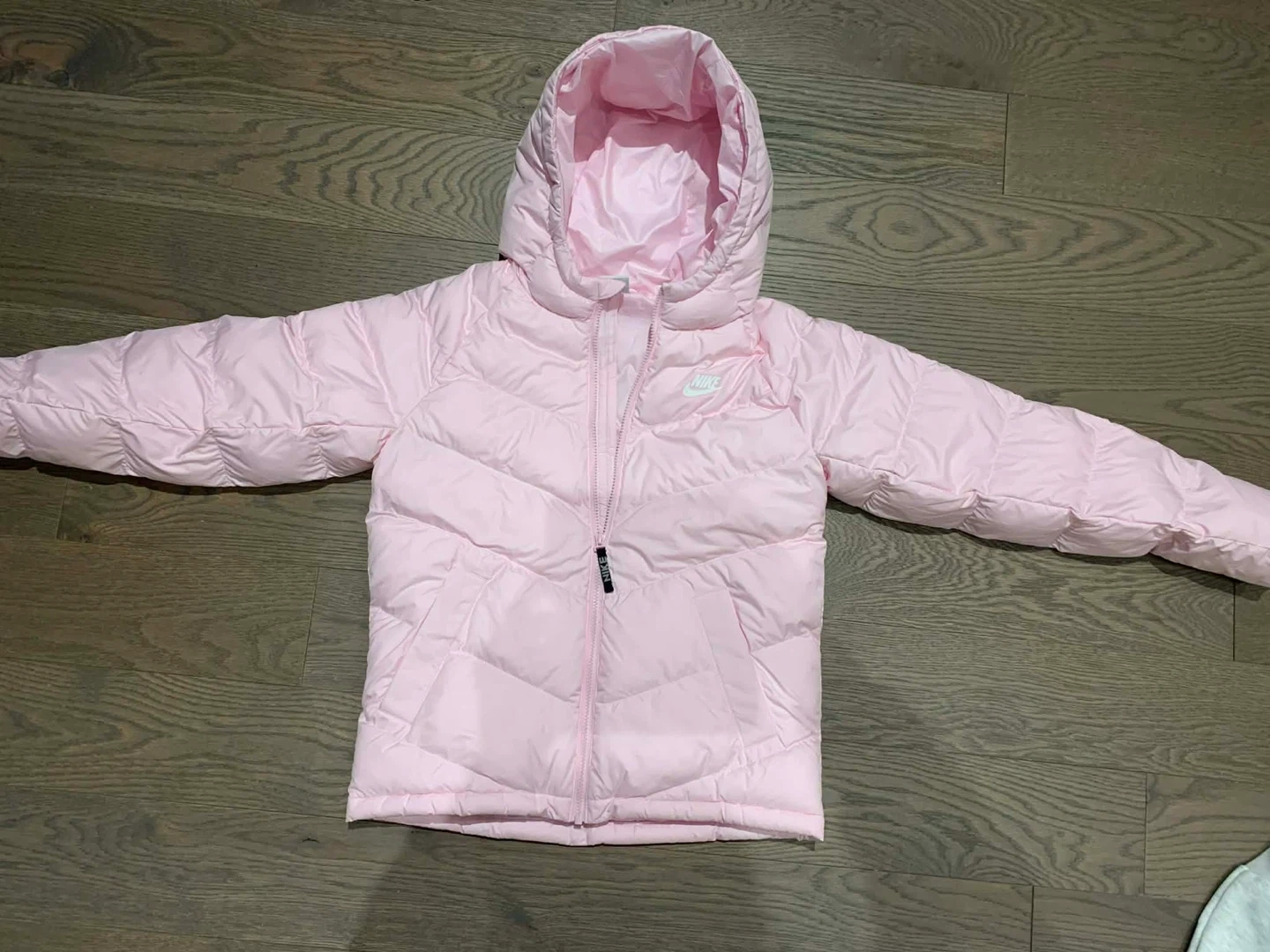 Selling a super cute pink Nike puffer jacket! It's NEW and perfect for keeping your little one warm. The jacket features a hood and a full zipper. Great for everyday wear!