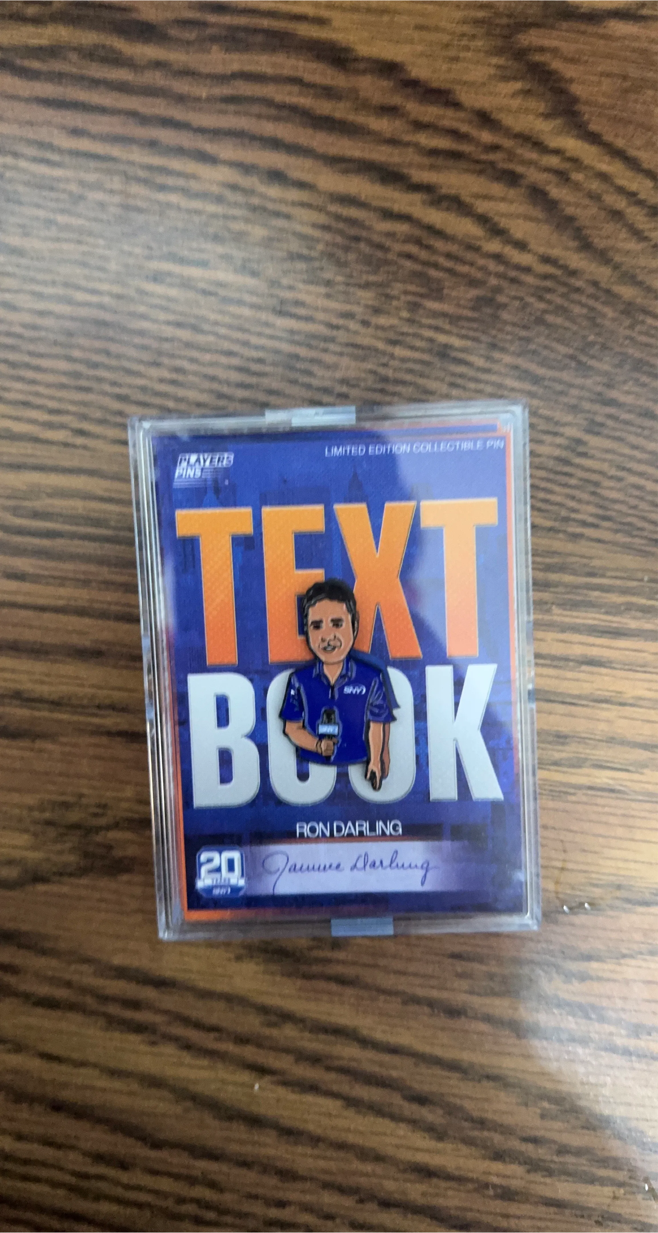 Selling a limited edition collectible pin featuring Ron Darling's Textbook. The pin celebrates 20 years of SNY. It's in great condition and comes in its original case