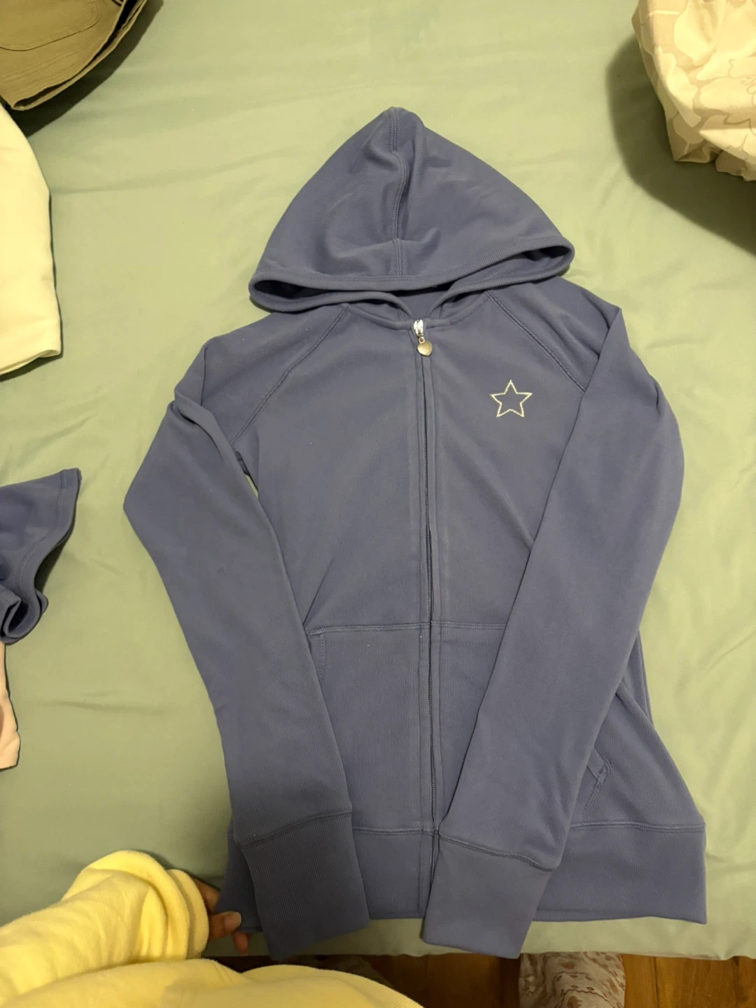 Abercrombie Kids matching set in size 15/16! The set includes flare pants and a zip-up hoodie, both in a lovely periwinkle colour. Perfect for a comfy and stylish look!
