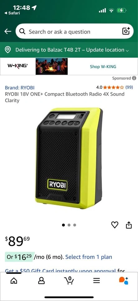 RYOBI 18V ONE+ Compact Bluetooth Radio 4X Sound Clarity