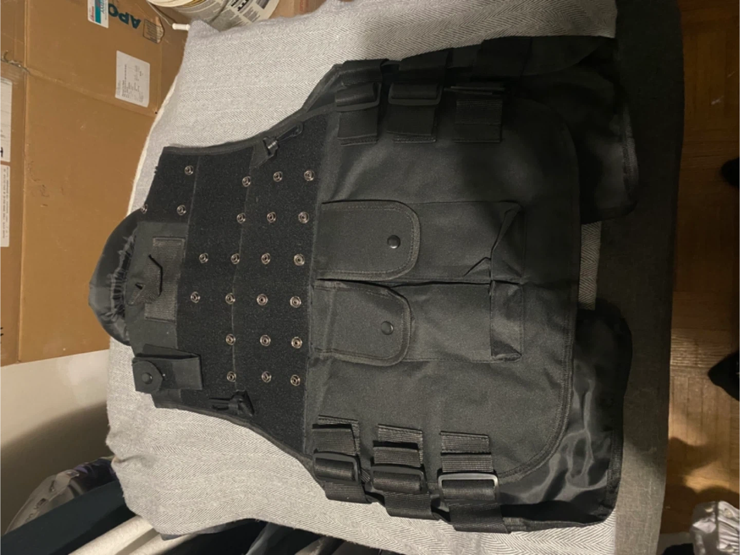 Selling a black tactical vest. in good condition, with multiple pockets and straps. Perfect for tactical activities, fashion or cosplay